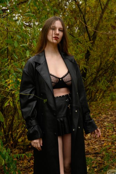 Jupiter Stassy (aka Evalynne) loves to show off her big natural boobs in a sheer top and mini skirt because she has sensitive friends on Zishy.