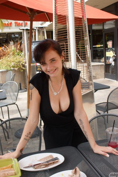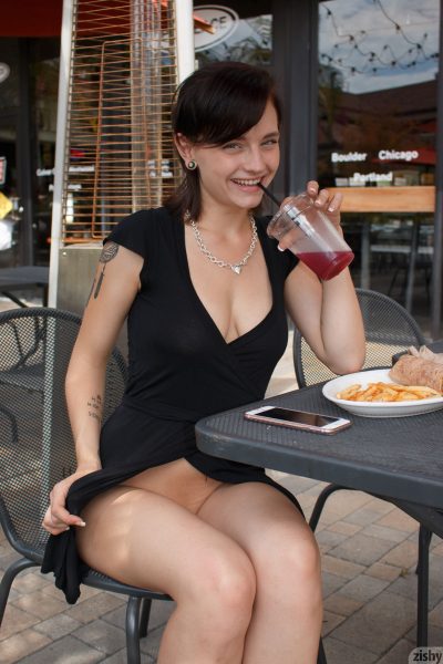 Who is this cutie Kai Marley? She's this petite brunette who lifts up her dress while eating lunch, she's not wearing panties mind you. That cute smile and giggle is captured by Zishy and to answer your question, yes, her boobs jiggle. You want to be admired. You want to be at the top. Ahh that fucking Ego. That part of human nature that just won't be controlled. I wonder how much ego exists in a bee hive. We gotta work together. We gotta learn to be kinder. Let tbe beauty of Kai Marley just exist.
