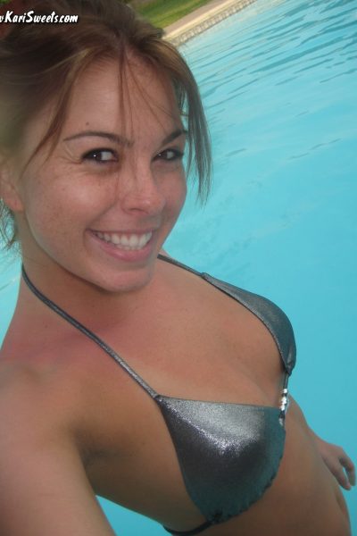 I'm not gonna lie, I've never felt so excited over a girl cleaning the pool as I have with Kari Sweets. Then again, she is wearing a really skimpy bikini and does hop in the pool to cool down only to splash around and flash her ass. This is why Kari is one of a kind.