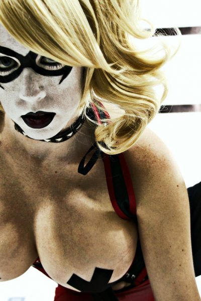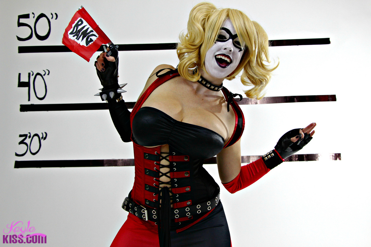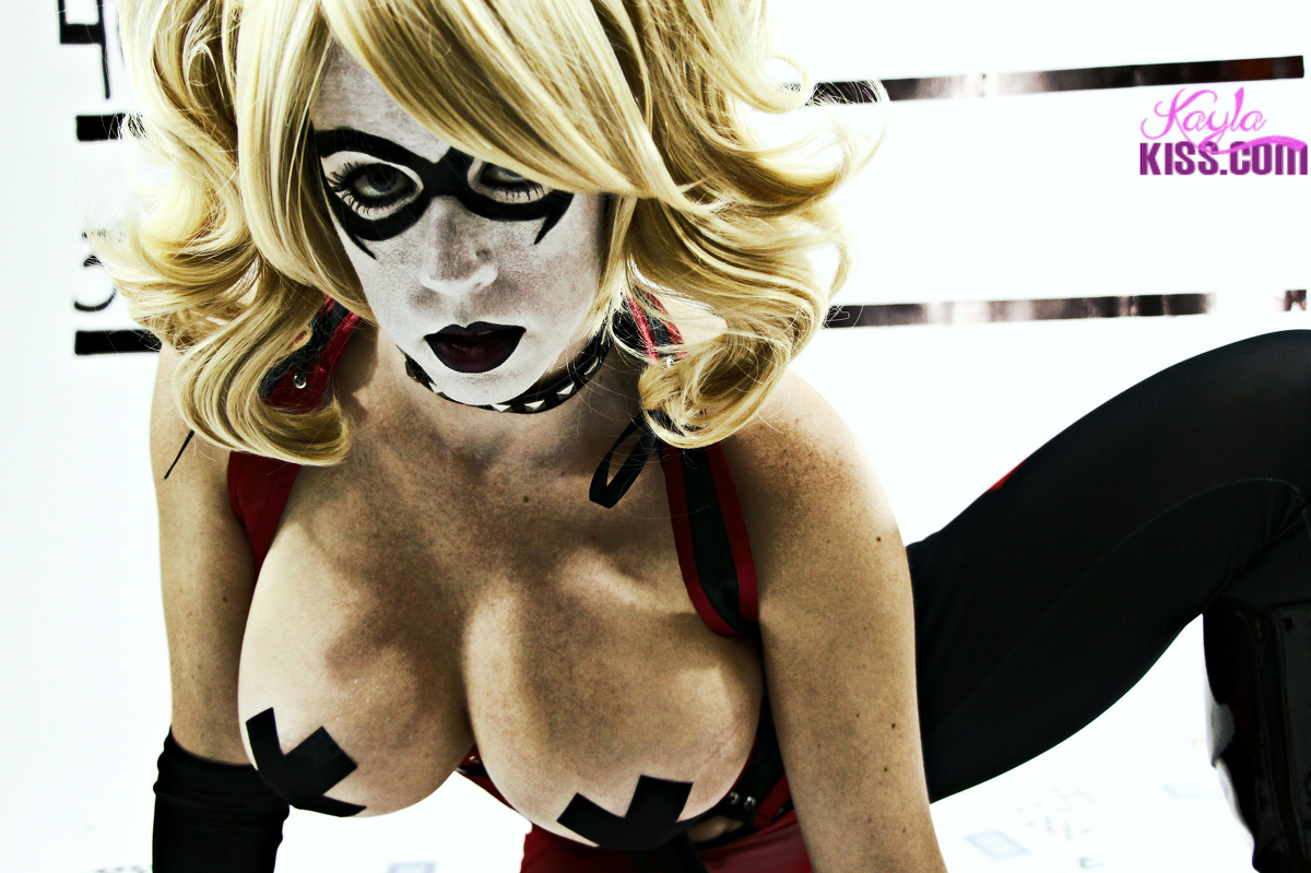 You know what I really like about Kayla Kiss? Her love for costumes. Today she dresses up as Harley Quinn and all I can do is drool because this costume is dead on correct (and her boobs look AWESOME). Infact, now I want to read comics with Kayla because why not? She loves doing that too!