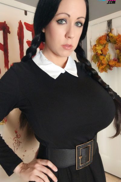 is playing wednesday addams this year. Her costume is on point and I love that she's wearing a