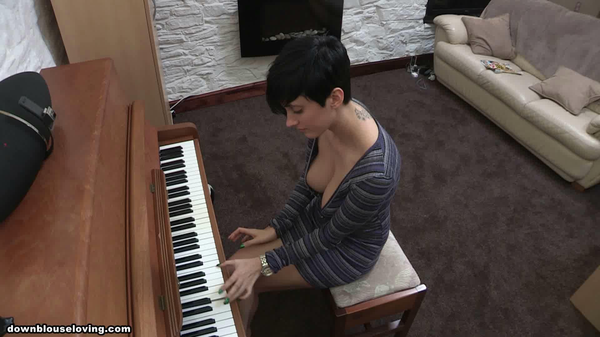 shows that being good with her fingers causes her boobs to pop out of her top, and she even laughs when her boobs fall out!