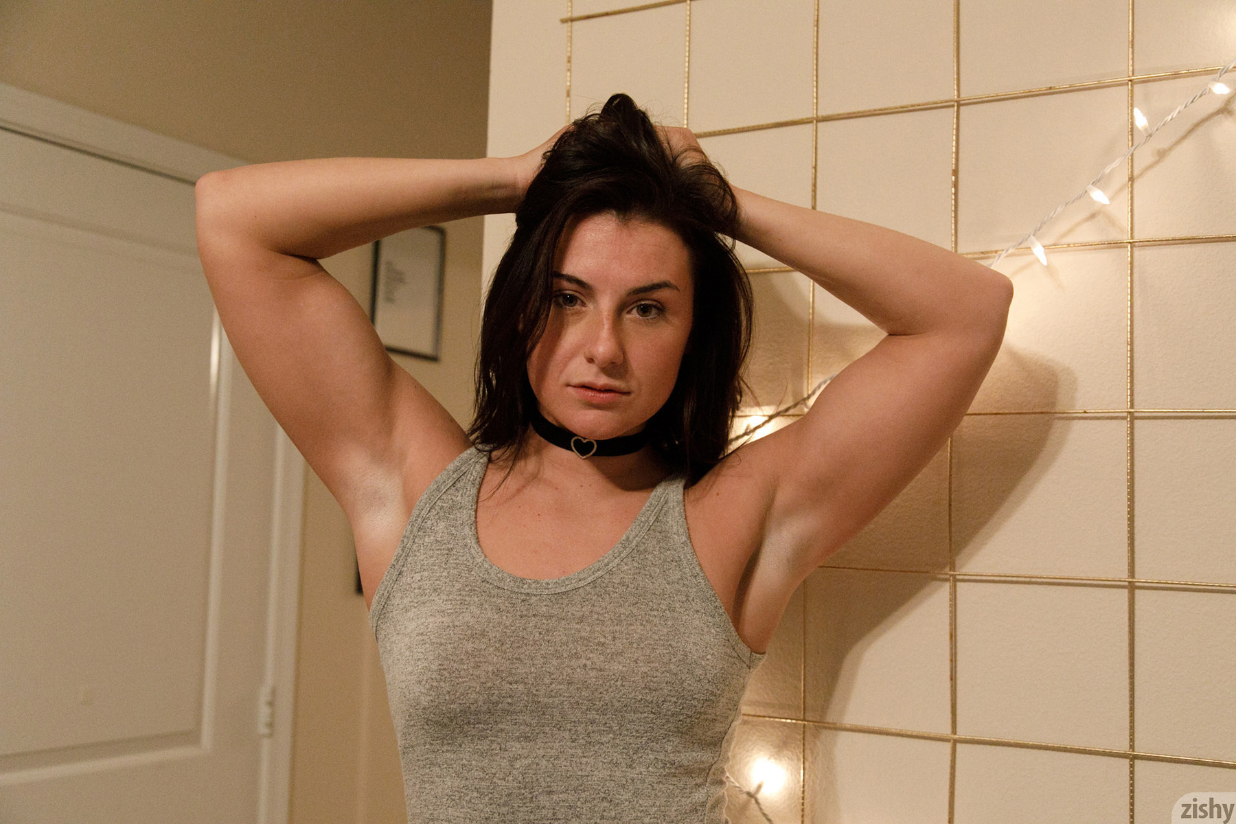 Kim Solari is mixin it up by getting ready for a night out on the town in her cotton dress, showing off for Zishy. The best part is catching Kim without any panties in her bed.