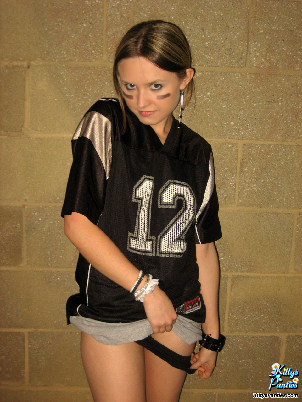 For every new technology that makes photos look better, one thing never changes: the amateur look. This is why Kittys Panties caught my eye today, this girl is putting on a football shirt, walking in public and flashing her body.