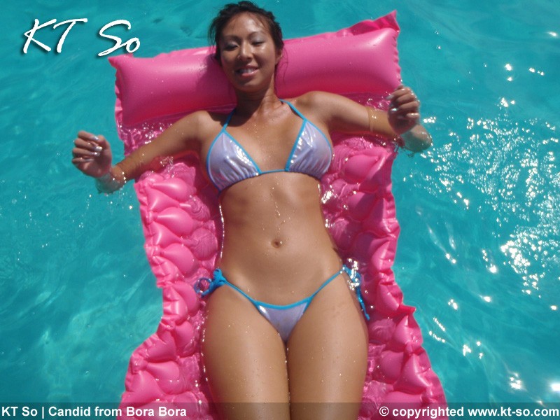 I knew there was a reason I need to visit Bora Bora and it's because of Kt So. I found these extremely rare pictures of Kt So in the smallest string bikini on the beach, and I love it. It's like a look into her life.