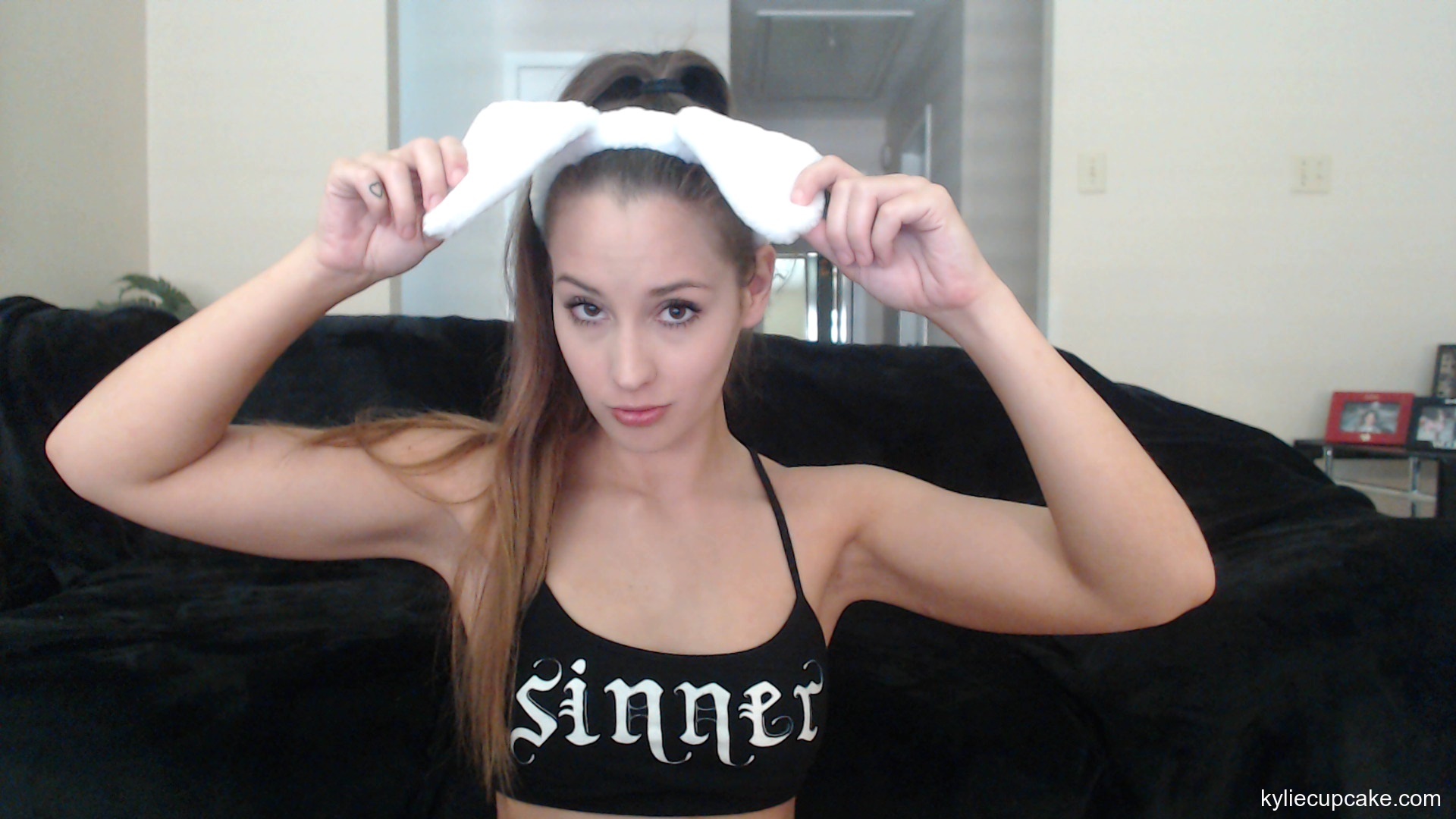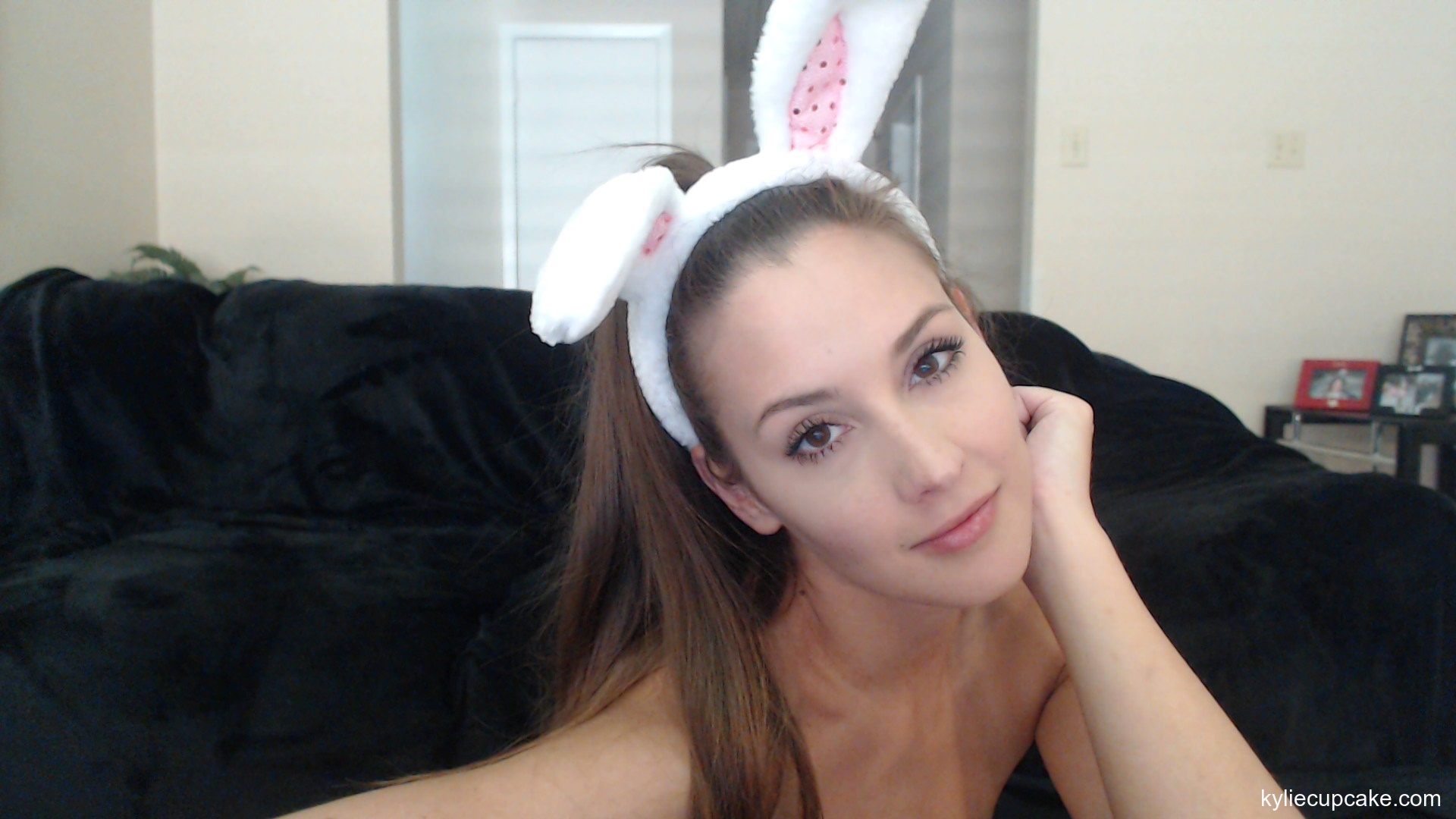 is always in a playful mood when she hops on her webcam. Today we get a nice bunny ears surprise before Kylie rips off her black thong and does a booty dance so special, you'll be drooling.