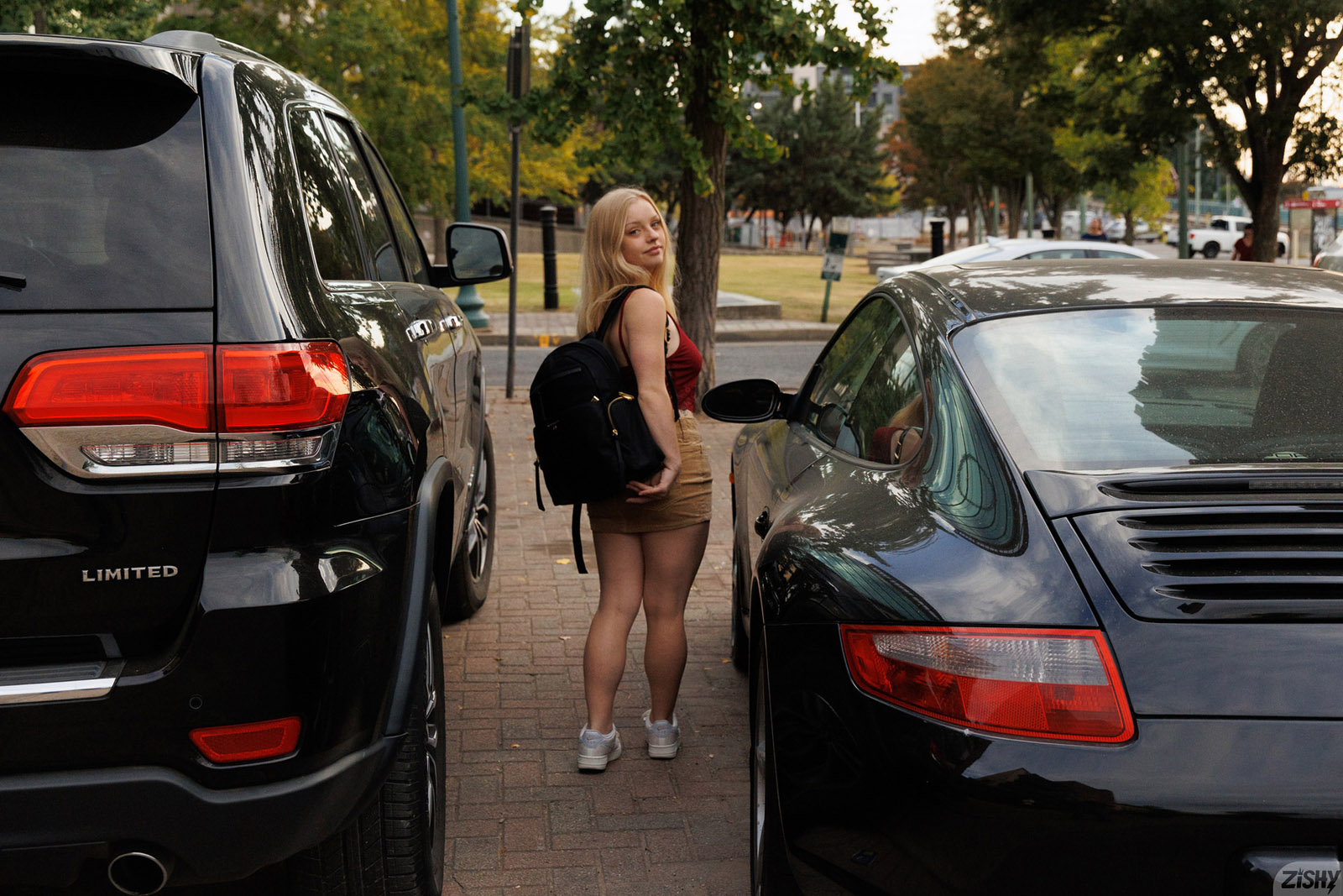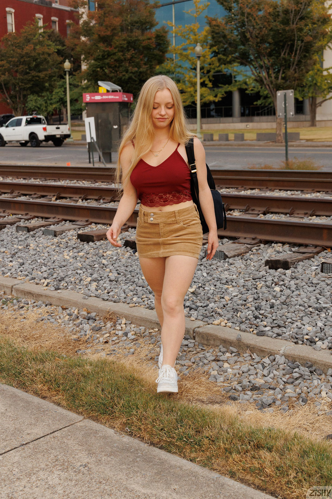 Kylie Shay loves walking in Memphis wearing her cute tank top and skirt so she can flash her amazing boobs on Zishy.