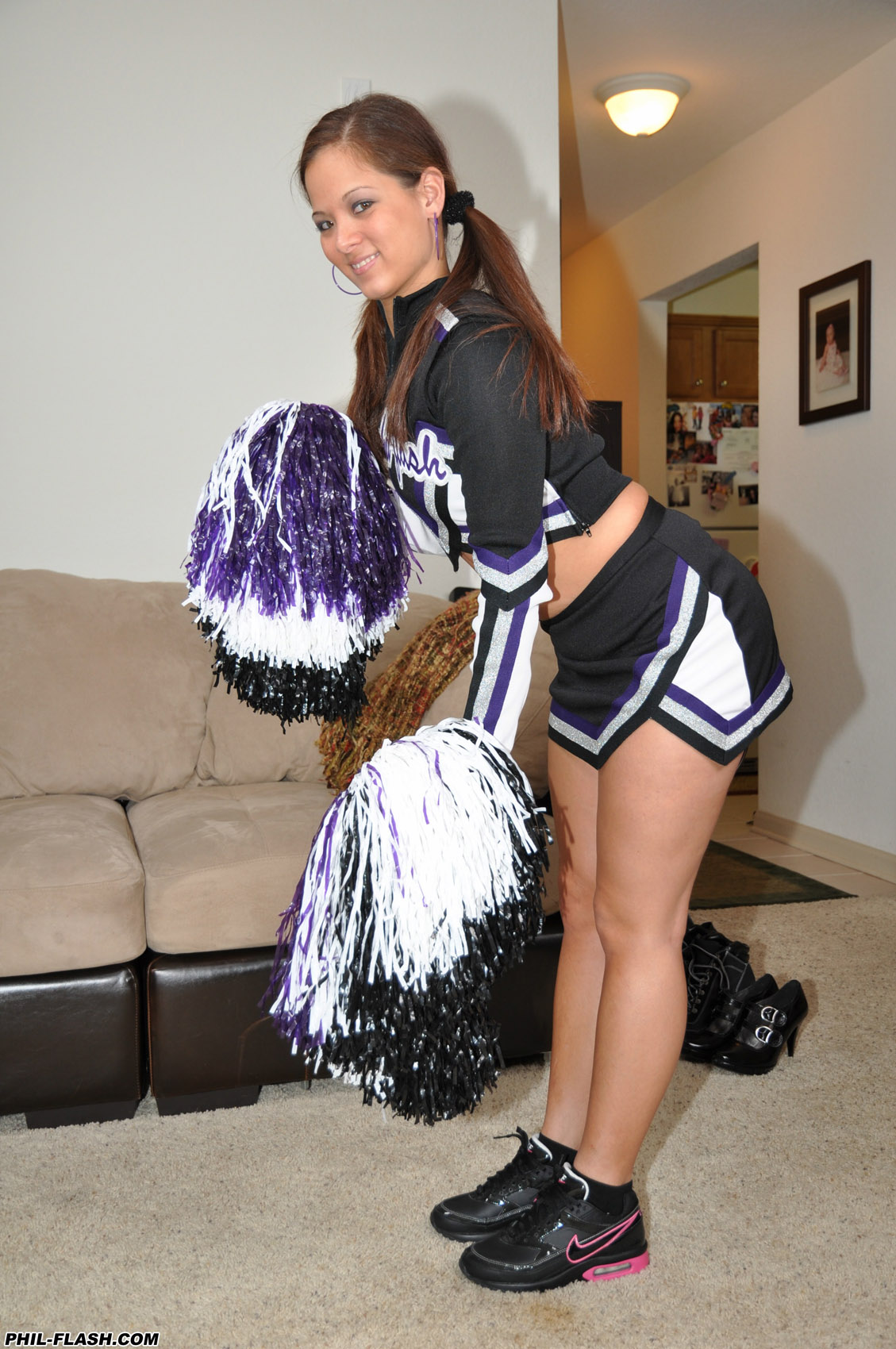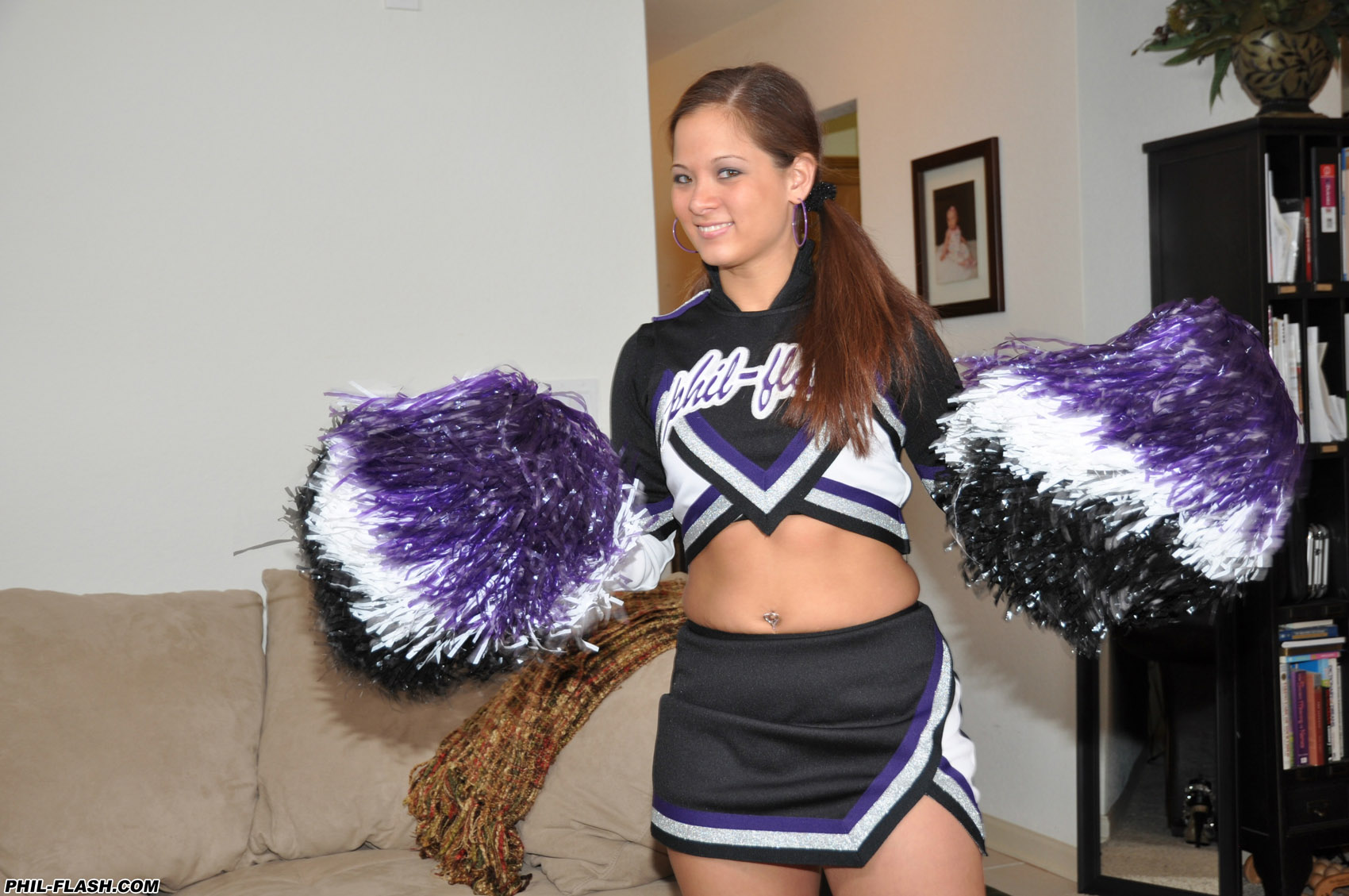 When Lexi from Phil-Flash gets home, the first thing she wants to do is cheerleader training. After a few splits and pom-pom pumps, we find Lexi flashing her round ass in a tiny thong, and I hope that is part of her routine because it certainly made me want to cheer for her.