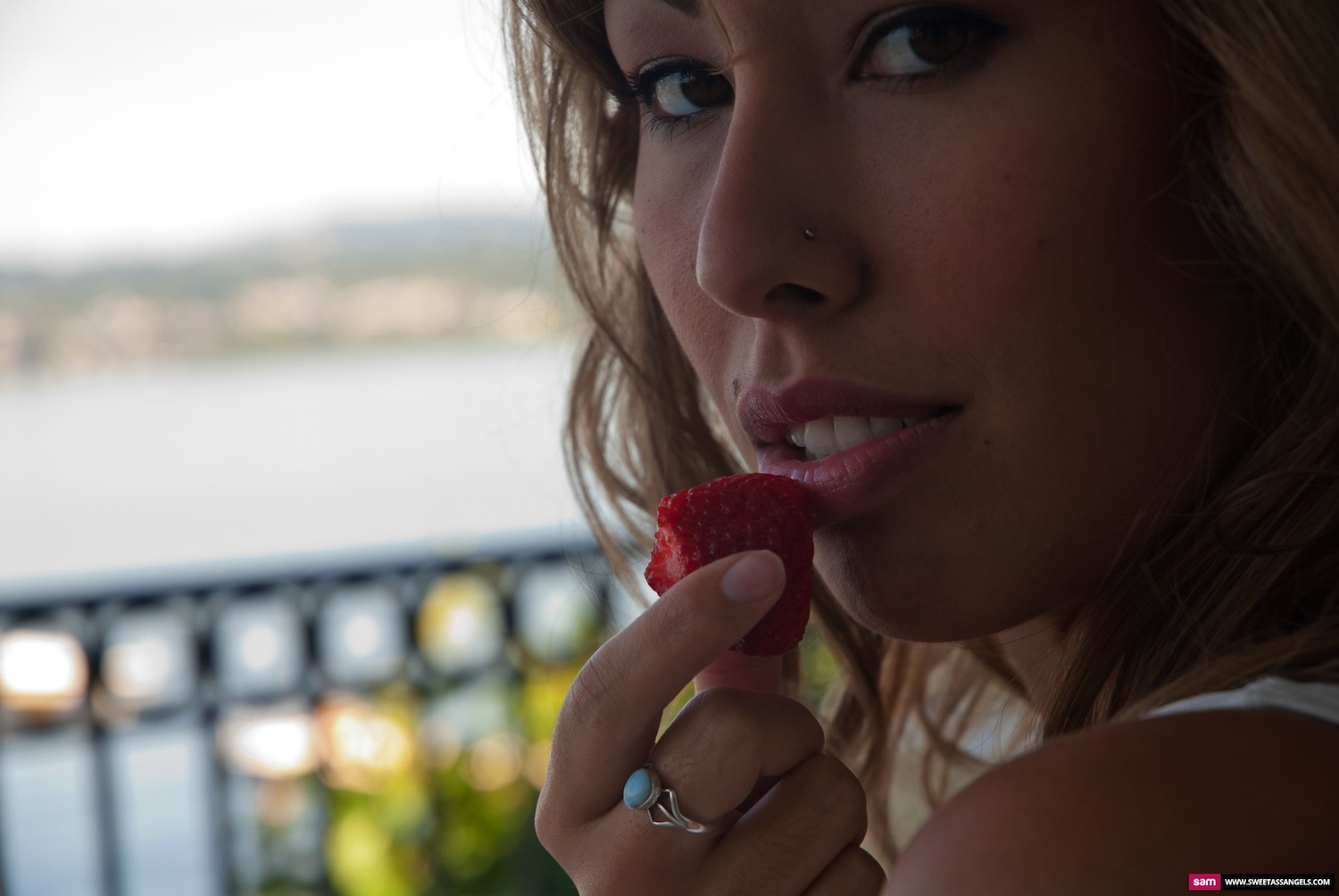 You know what I love? Upclose pictures of Lita Lenee licking strawberries. This is what happens when she appears on Sweet Ass Angels with some fruit, a tight top and wandering hands. Before you know it, Lita is letting her huge boobs breathe, and gives her neighbor the view of a life time.