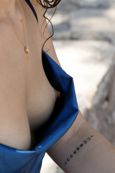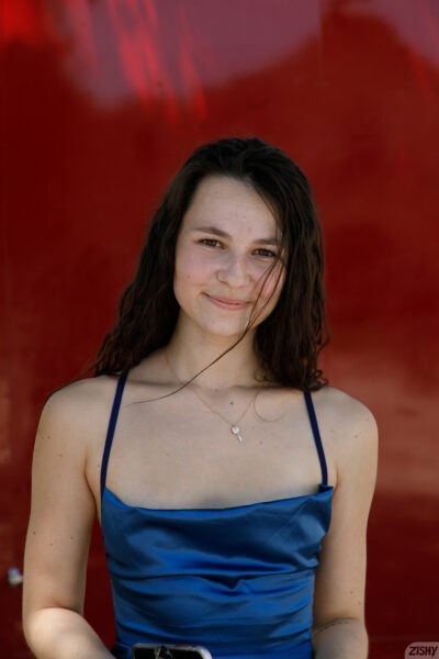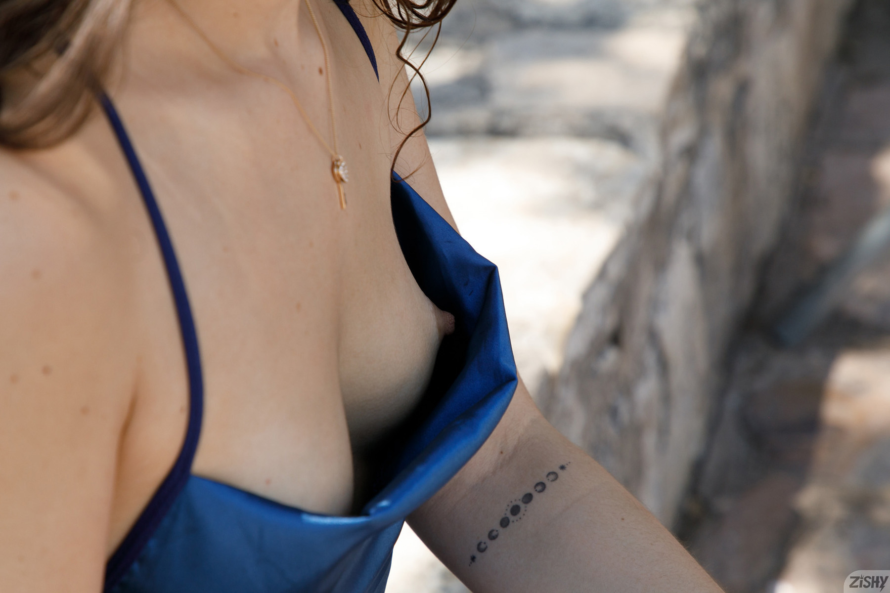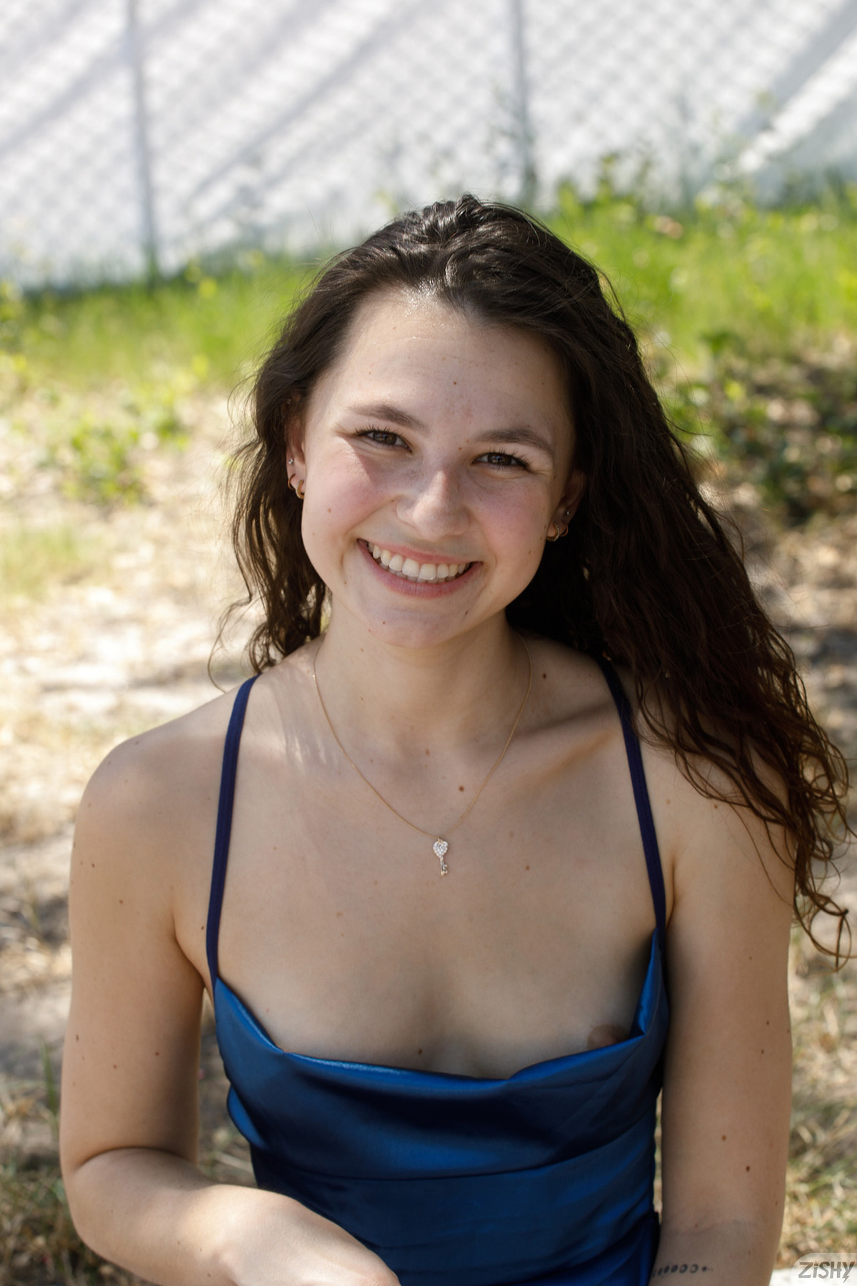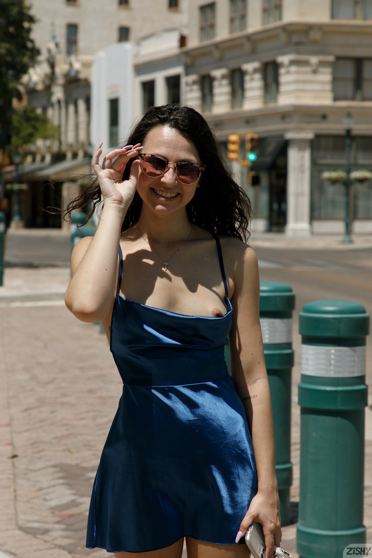 Liz Jordan got candy in the form of the most delicious perky tits and bare pussy that she flashes in her tiny blue dress on Zishy.