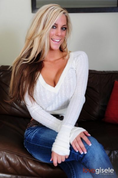 It's sweater season now and there is one upside to all of this, hot boobs in tight sweaters. Love Gisele shows us exactly that and then some, taking off her her sweater and jeans to get more comfortable. Gotta love hard nipples in the cooler weather ;)