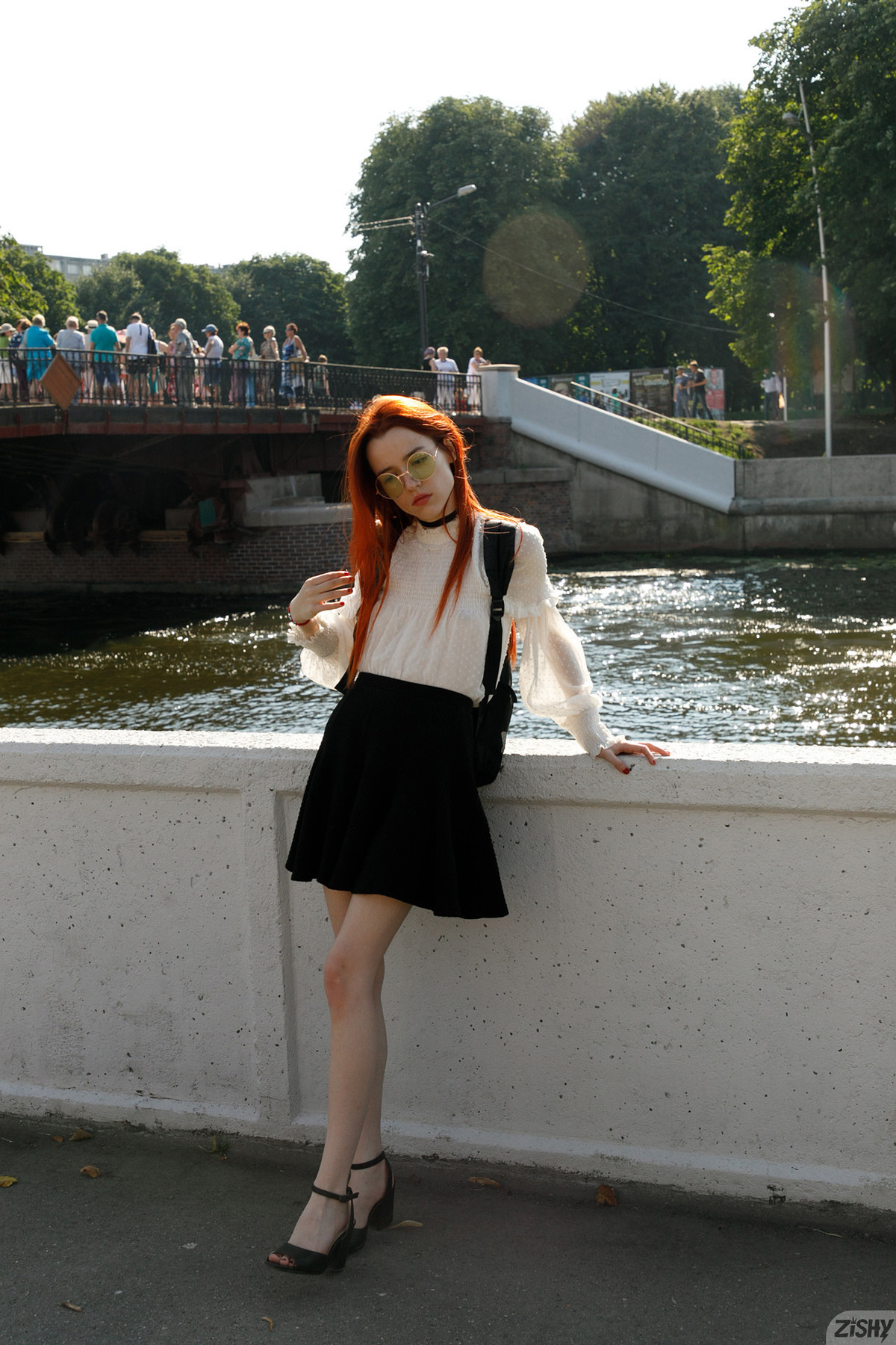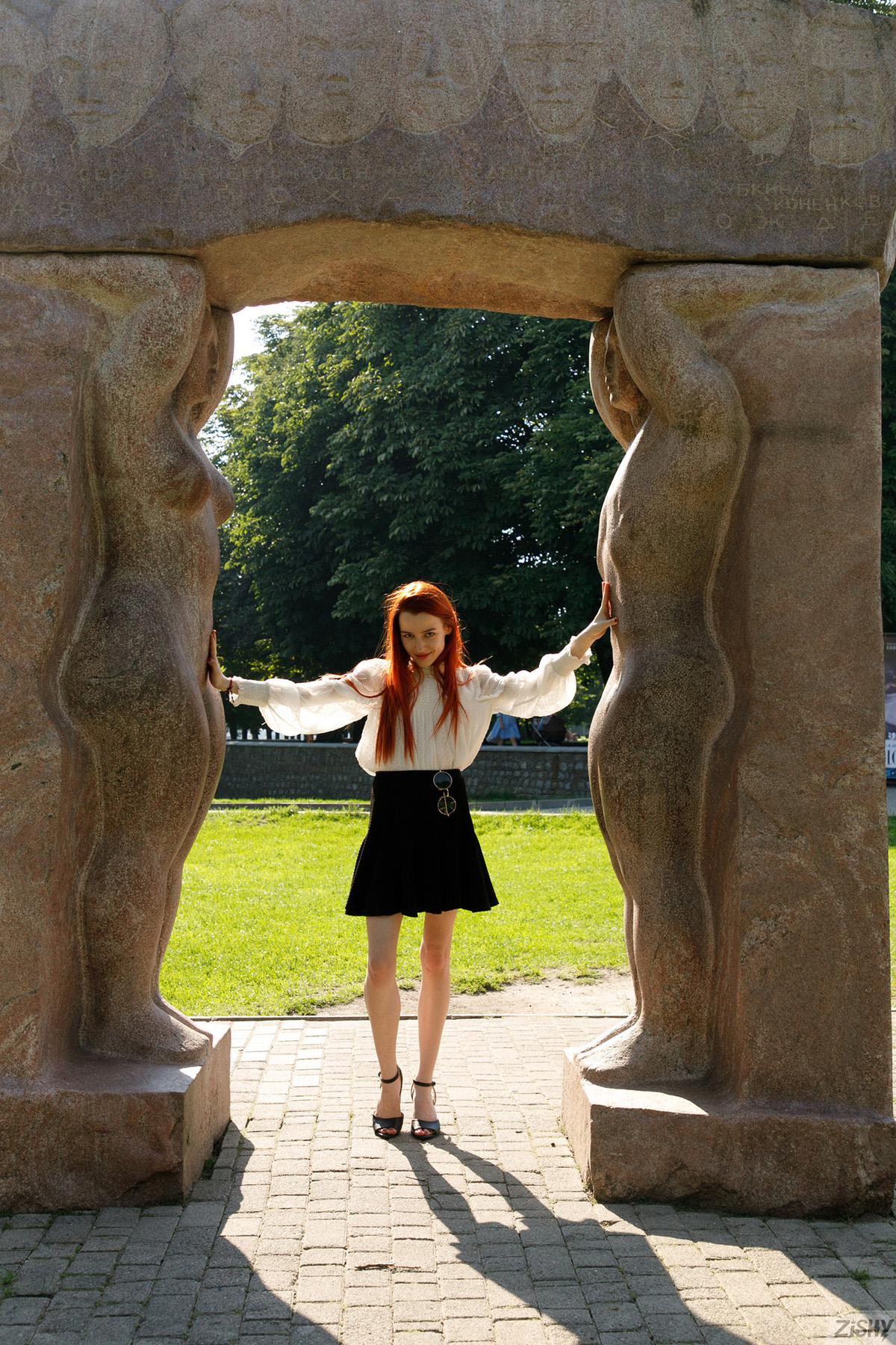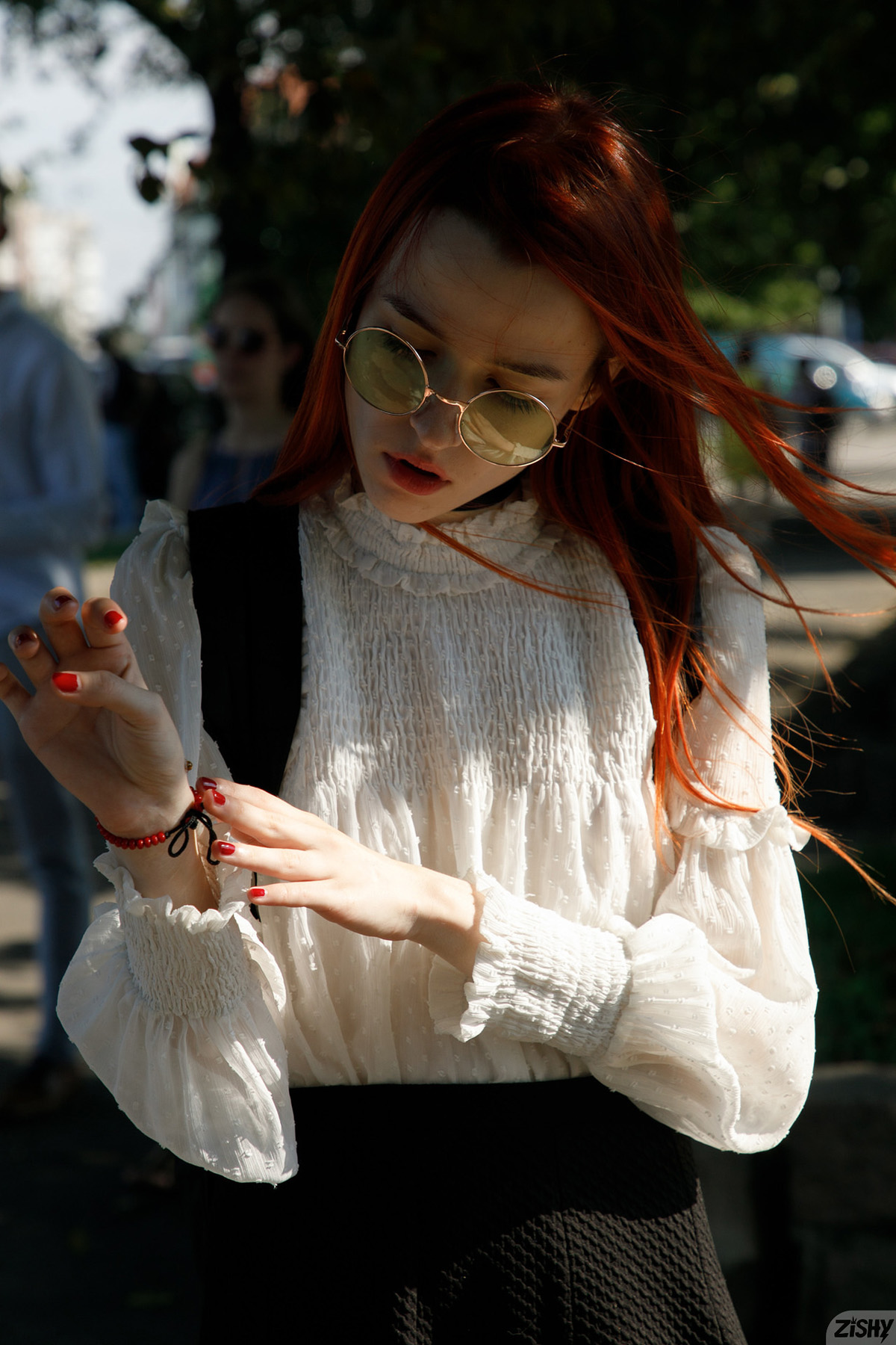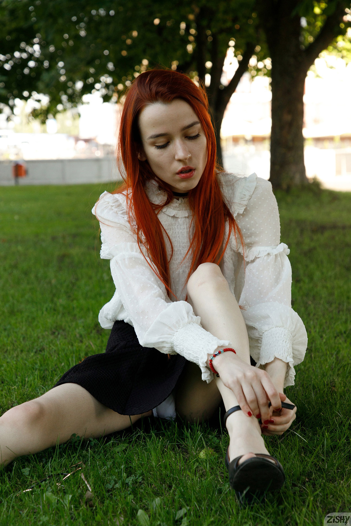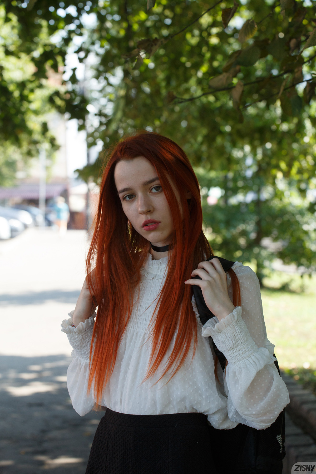 Luba Cherisova is a cute redhead newcomer showing off her tits and ass On Red Wednesday while she's outside posing for Zishy.