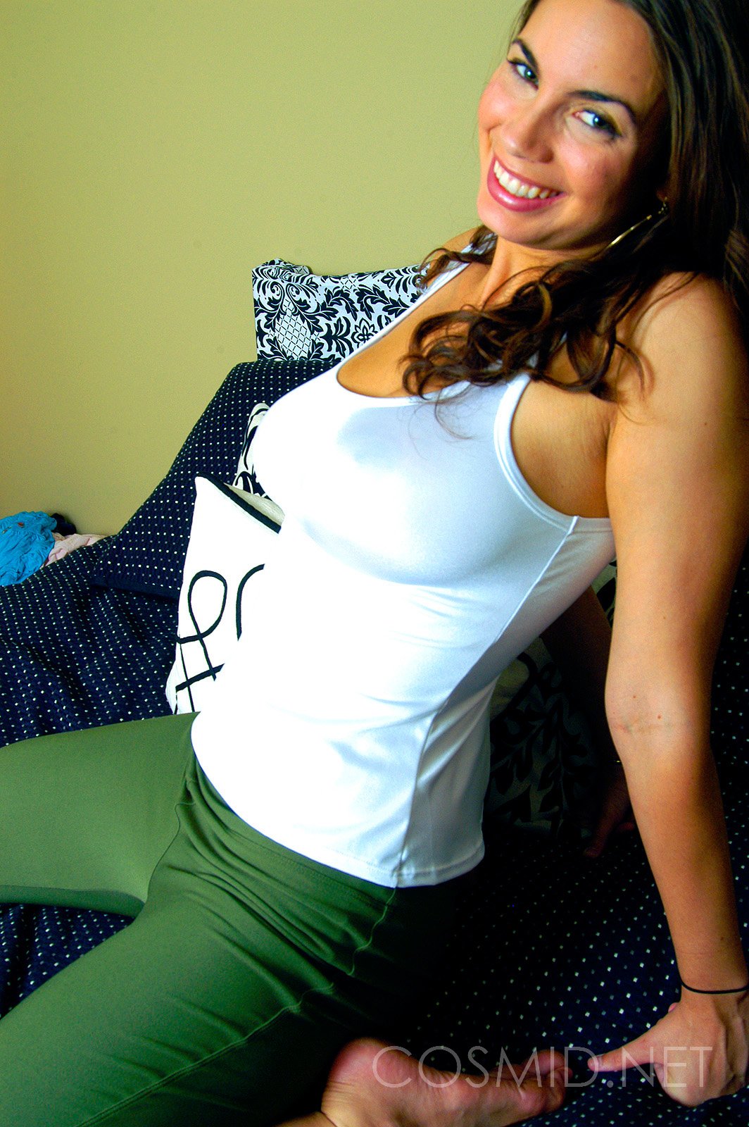 Lucinda just gets better and better. Last time we saw her she was playing with her dog and taking off her pants. Now we have some one on one time with her and she wears this tight tanktop that show off her boobs quite well, oh how I want to juggle them!