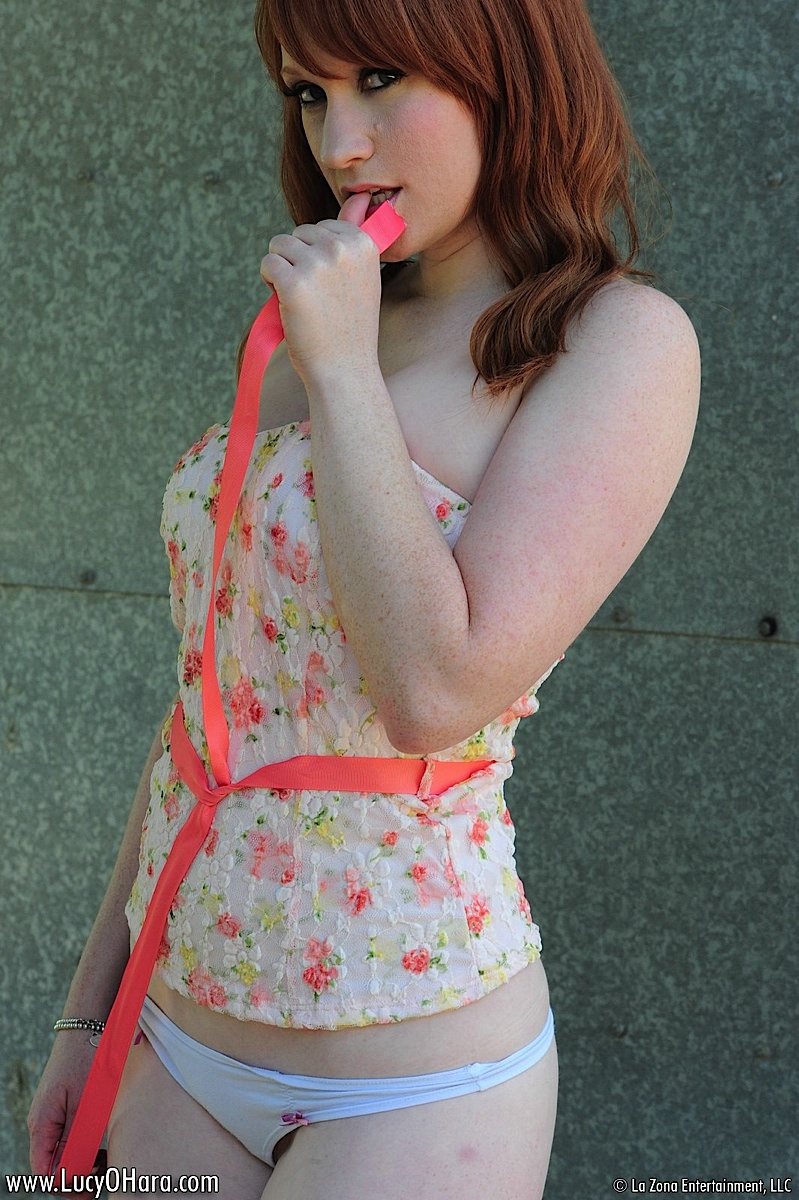 I started drooling when I saw this Lucy Ohara gallery, I have a newfounded love for sexy redheads like her. I mean just look at this pale beauty taking off her shorts slowly, she knows what she is doing.