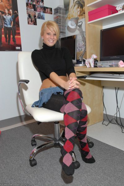 It's not often we get to "creep" on girls in the dorm room, so I'm very glad that Makenzie lets us in during her weekend studying session. As it turns out, studying is code word for getting naked and playing with herself until the whole dorm is listening in on her!
