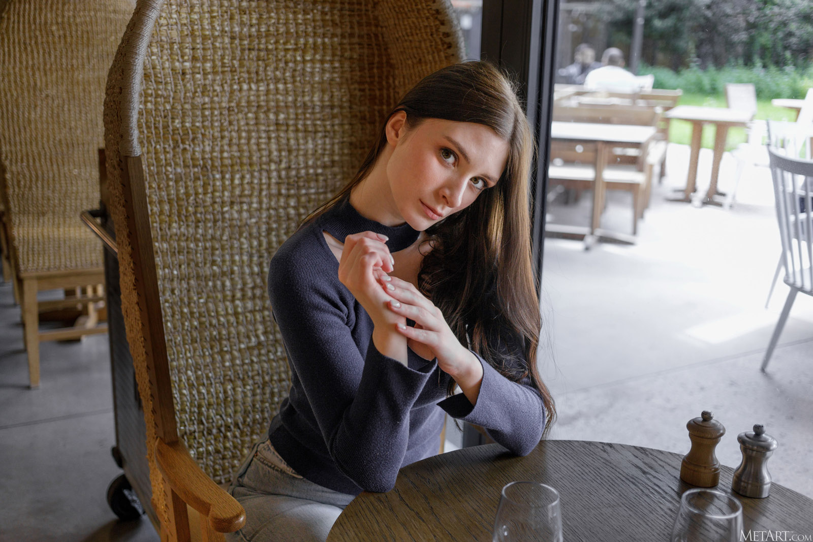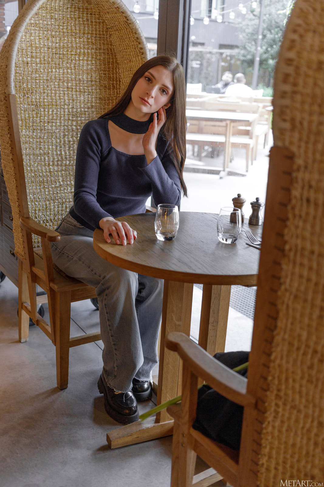Marion Summers has a cup of coffee in the cafe then comes home to open up her coat and take off her lace lingerie on Met Art.