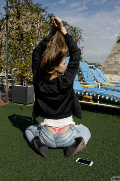 You can find Mazzy Plimpton at the hollywood tower in a very sheer tank top and jeans as she walks around town having fun on Zishy.