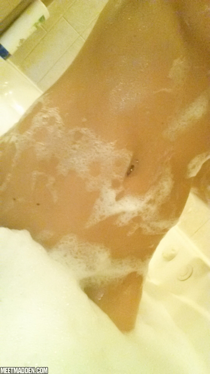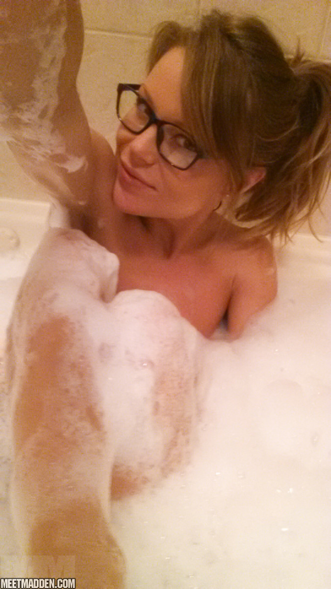 This is the moment we've all been waiting for: getting to take a bath with Meet Madden. She took some revealing selfies of her soapy tits and round ass, but the best part is when the water runs down her smooth pussy.