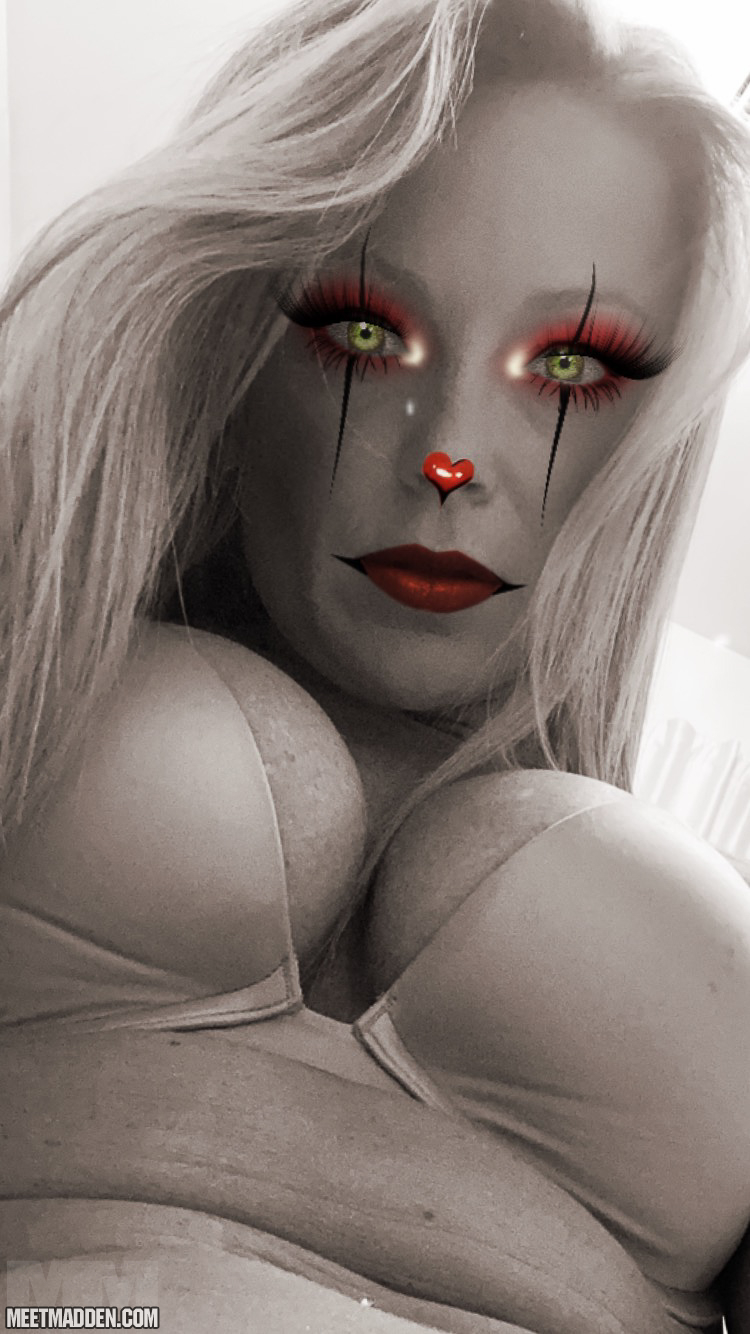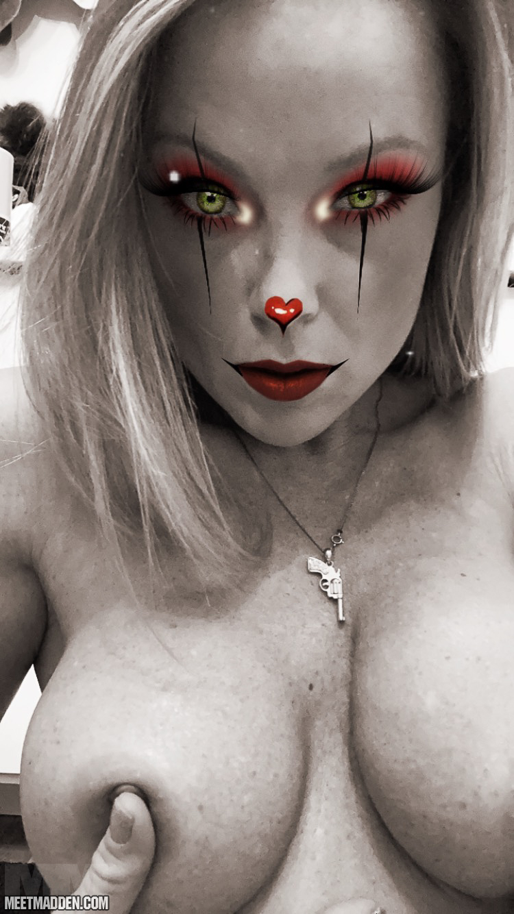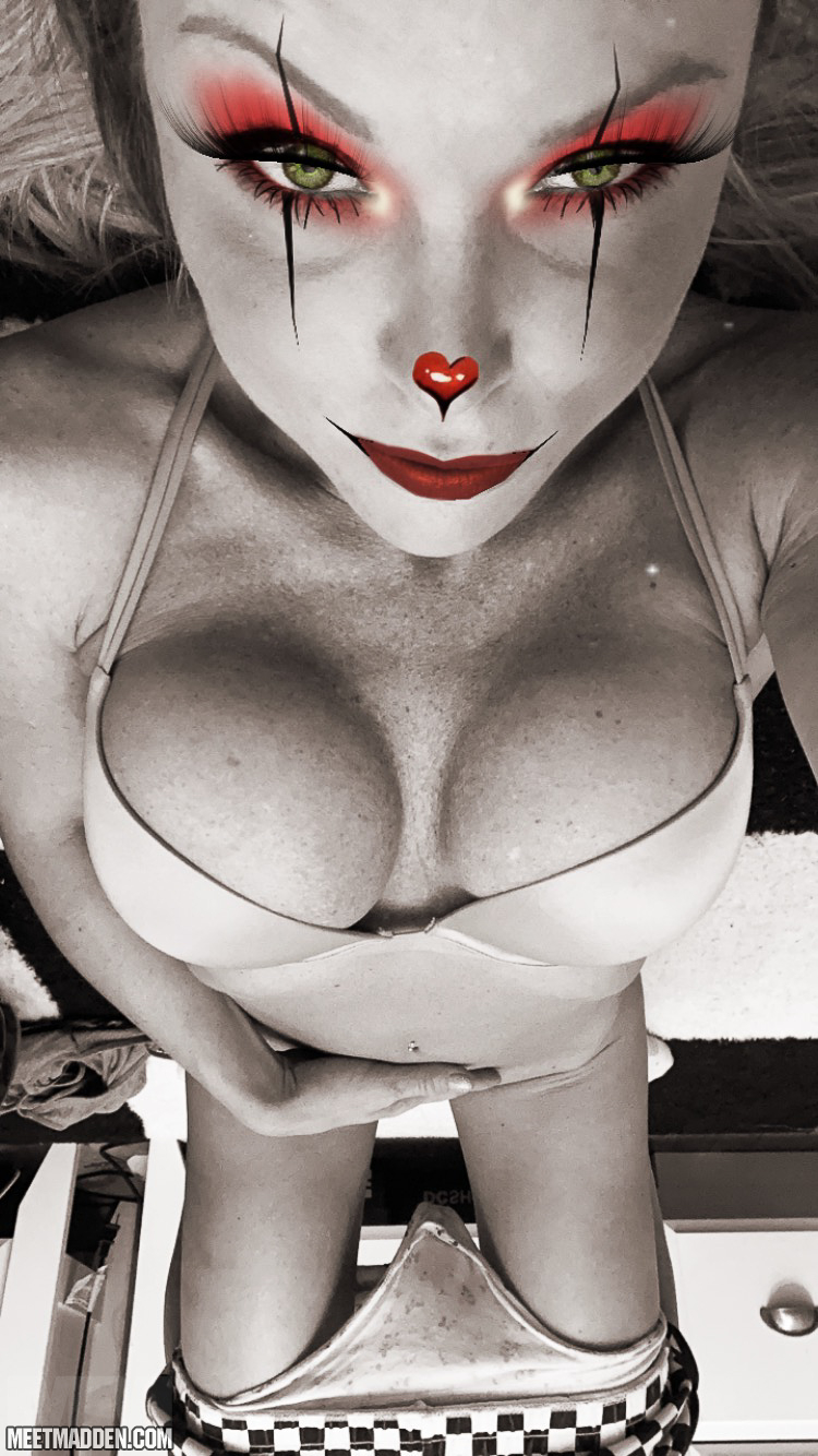 Meet Madden is in a cosplay mood, so how about mad IT! Yea who knew that a topless pennywise with perky tits and a nice body would actually turn you on, but here she is doing it.This is an exclusive APP from Chaturbate - Live girls 24/7 - You don't even have to leave this site.Click here to unlock FULL access to Meet Madden's rare nude pics