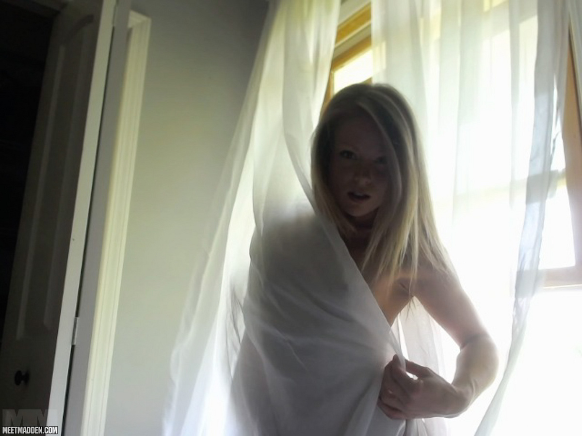 Meet Madden always gets frisky when she hops on webcam and today she doesn't even bother with clothes. In fact, she wraps herself up in her sheer curtains when the neighbor ends up getting a good view of Madden's perky tits and ass. After realizing this, Madden comes back inside and gives us an even better view.