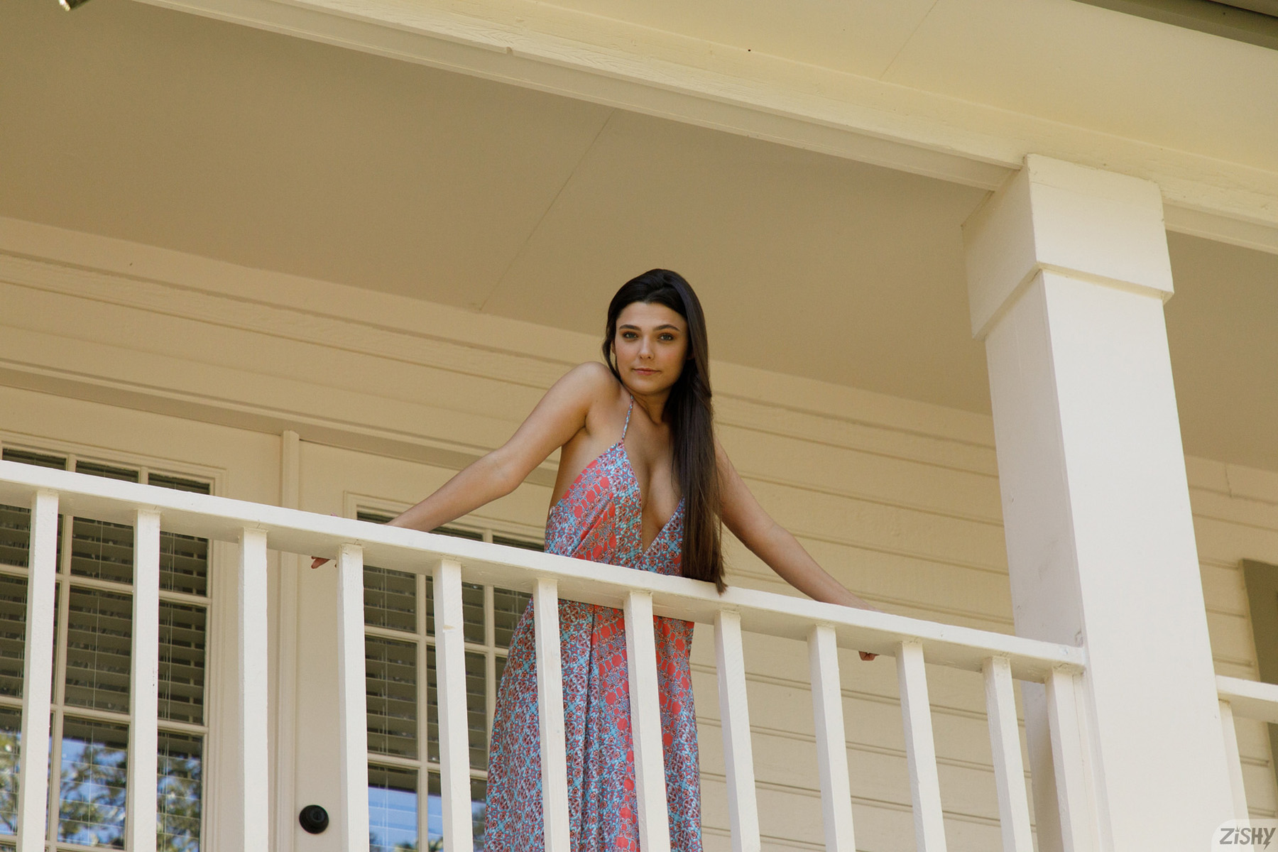Melba Chastain welcomes you to Hilly Country 2 where she opens her door and her dress to flash her perfect boobs and pussy on Zishy.