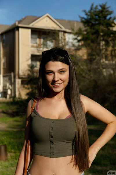 Melba Chastain decides to flash her perfect boobs and tiny thong at the Hill Country Villas while she plays the naughty girl by the pool on Zishy.