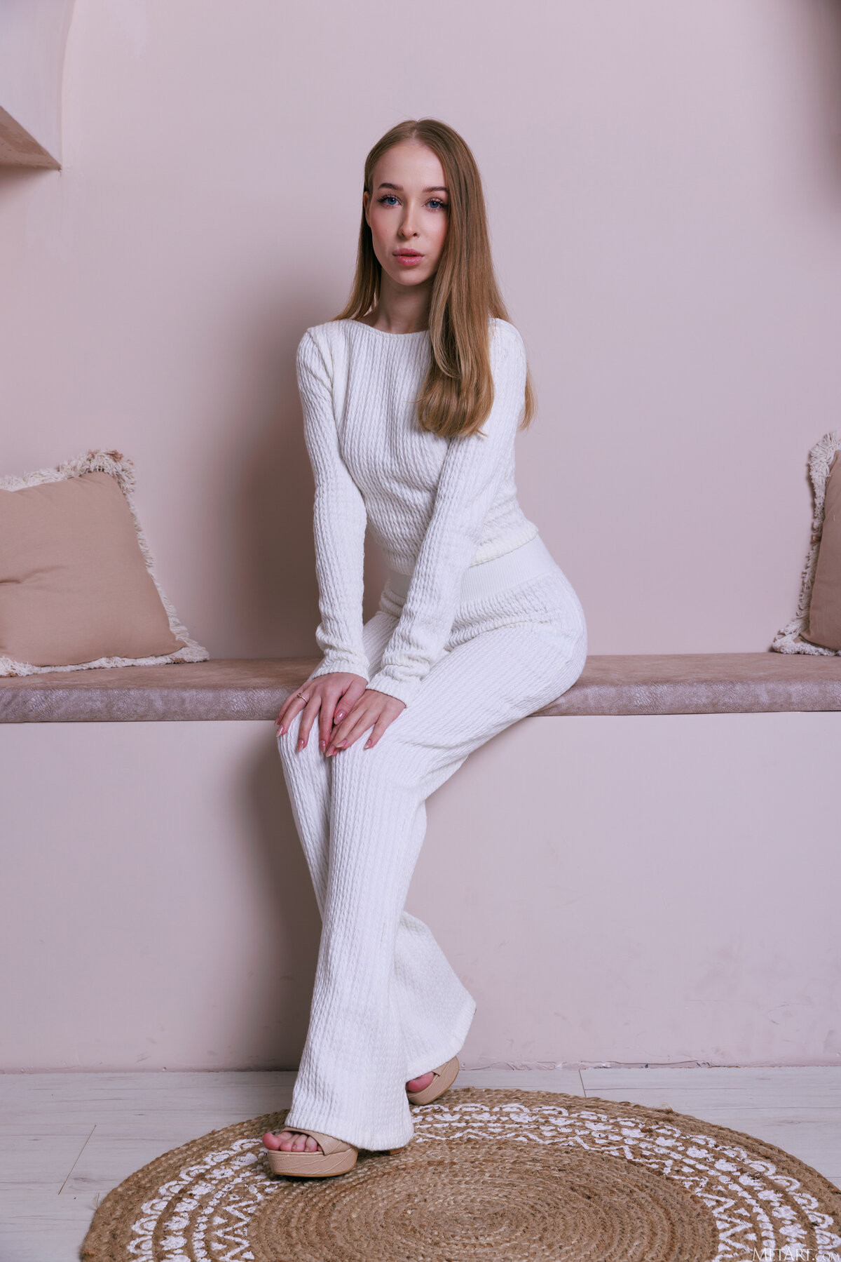 White blush is the color of Nata Ocean's sweater and pants as she slides them off to reveal her amazing body on Met Art.