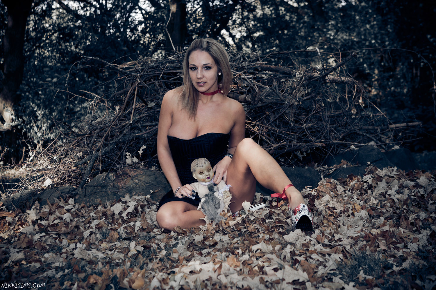 wants to wish us all a Happy and Scary Halloween, because she is playing the naughty girl in the woods, who actually bites herself and lets the (fake) blood run down her amazing boobs.