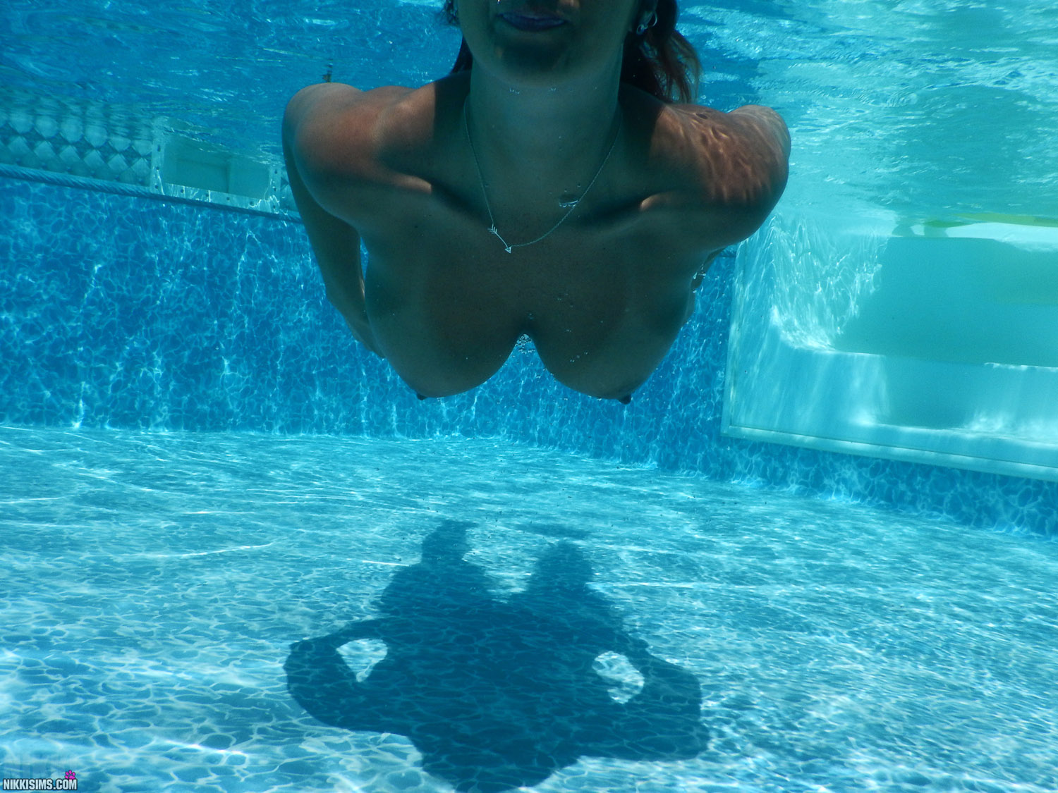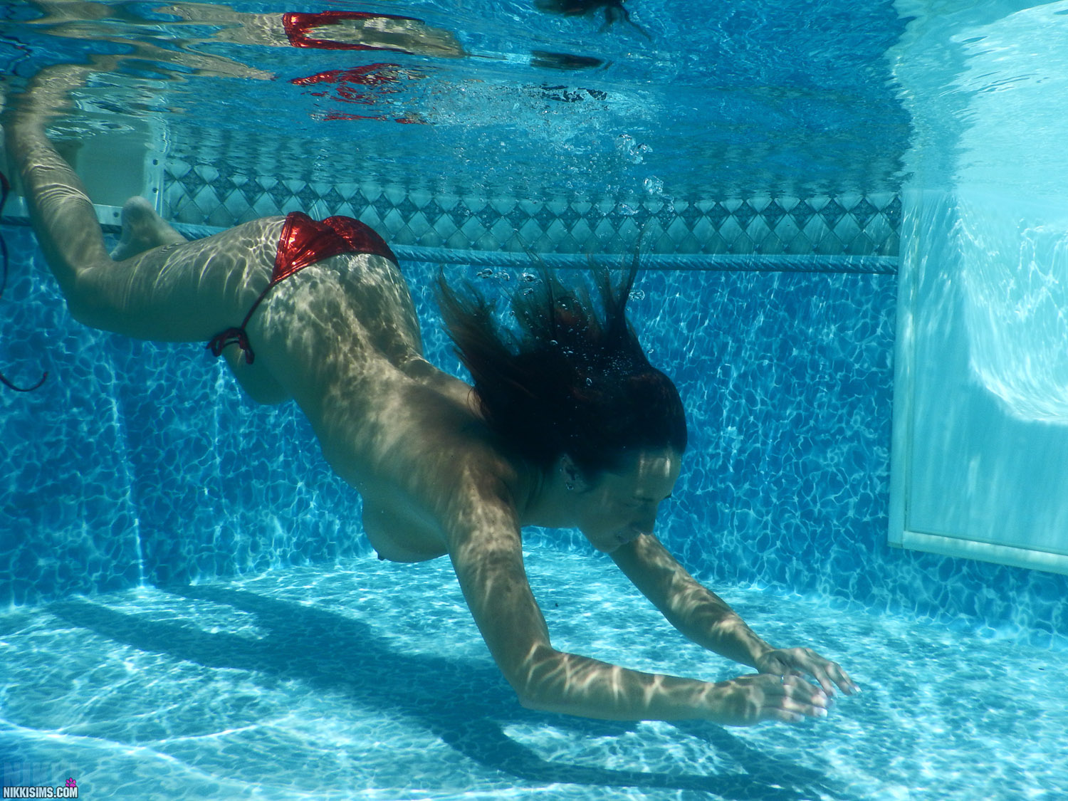 This is why I love the summer, because we get to spend some time in the pool with Nikki Sims and her sexy red string bikini. Then Nikki decides to rip it off and go swimming in the nude, letting the camera get super close to her boobs and ass, uncovered I might add.