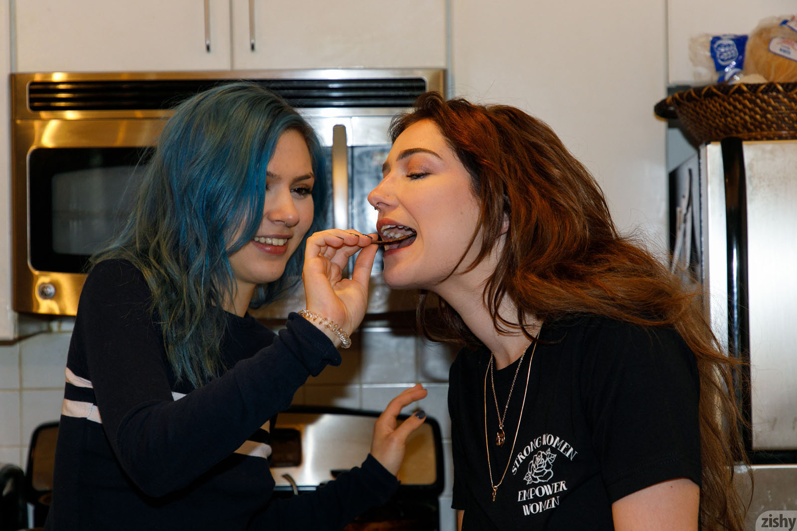 Nina Presley and Skye Blue are friends with benefits. The benefit of being on Zishy in their underwear, while eating snacks and having fun. This is what I want to see when girls are together, not this fake lesbian stuff. You want to be admired. You want to be at the top. Ahh that fucking Ego. That part of human nature that just won't be controlled. I wonder how much ego exists in a bee hive. We gotta work together. We gotta learn to be kinder. Let the beauty of Nina Presley and Skye Blue just exist.