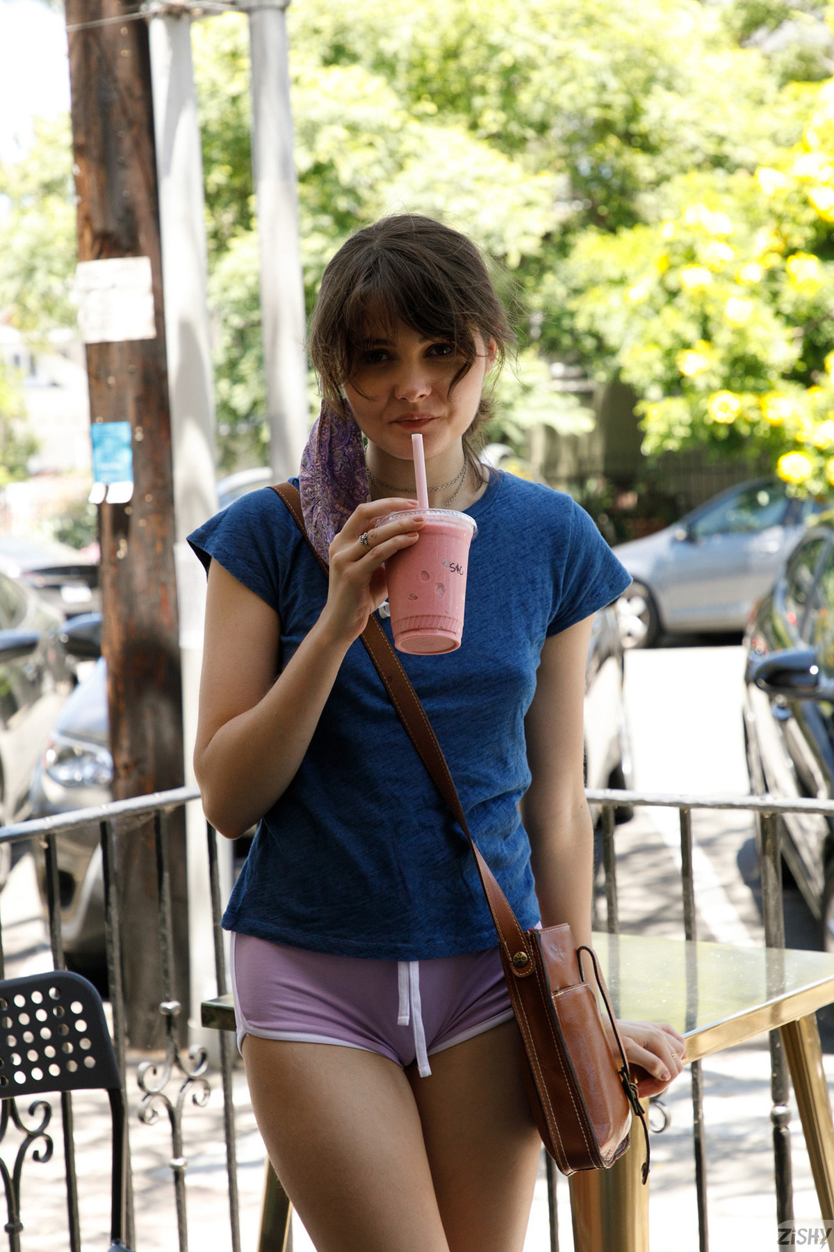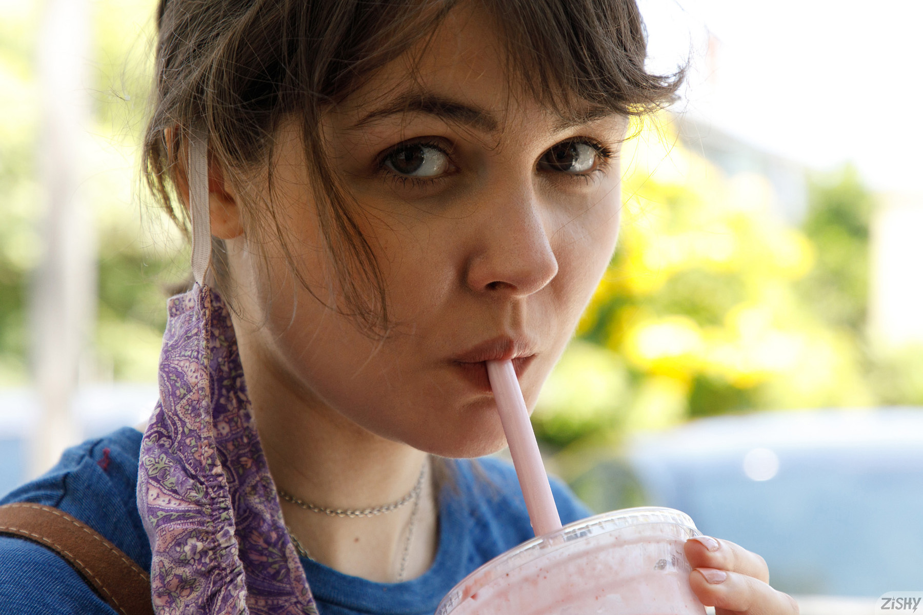 Onna Metcalf drinks her fruit smoothie in a tight shirt and cute shorts while she goes fruit yourself on Zishy. That means Onna pulls down her shorts so you can stare at her bare ass.