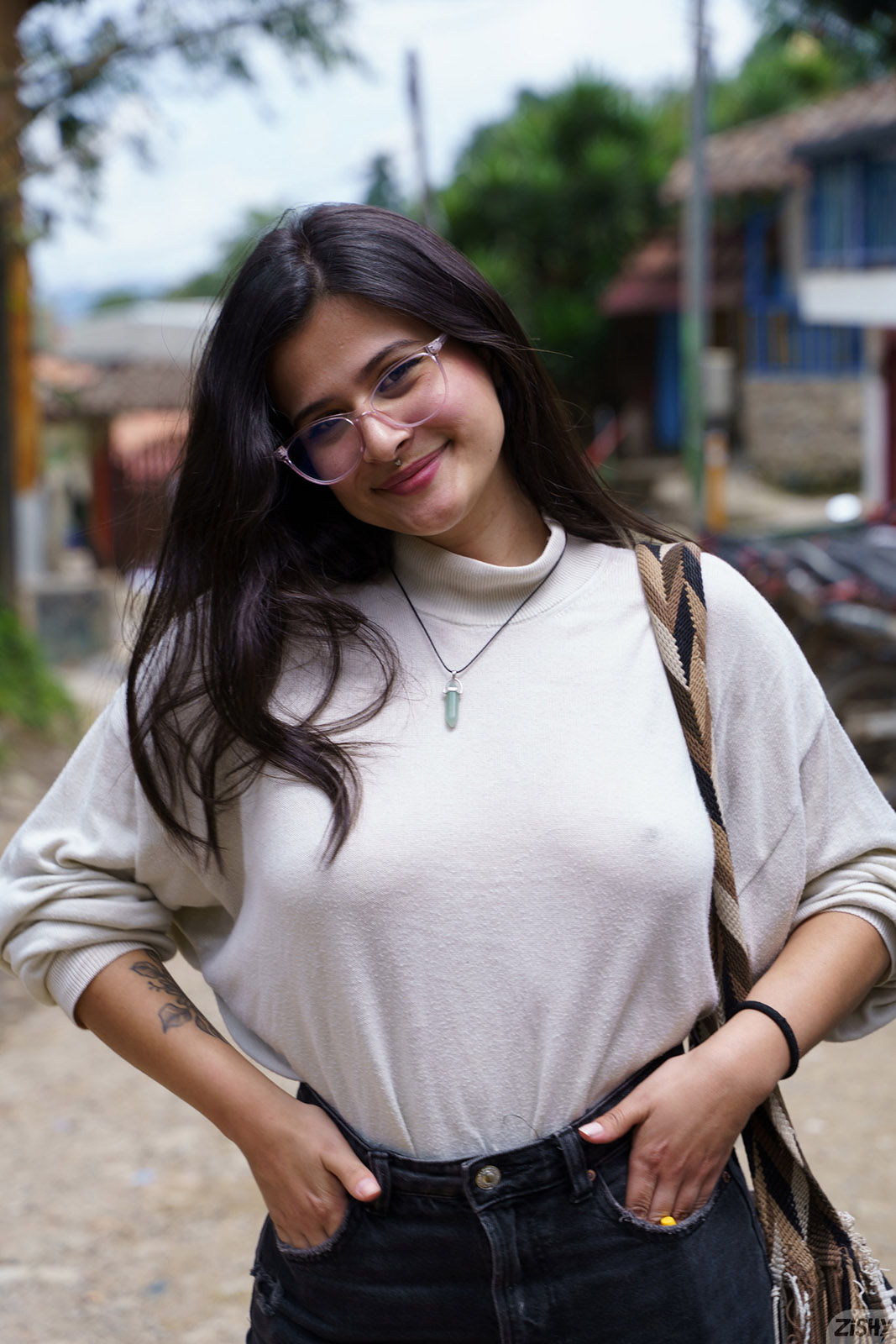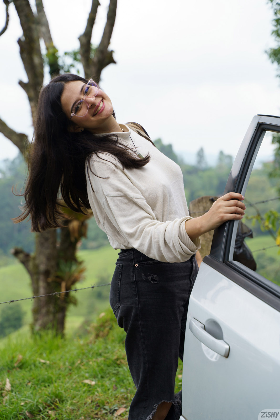 I love the way that Pamela Cuevano walks to the car in this very candid set but still full of curvy surprises on Zishy.