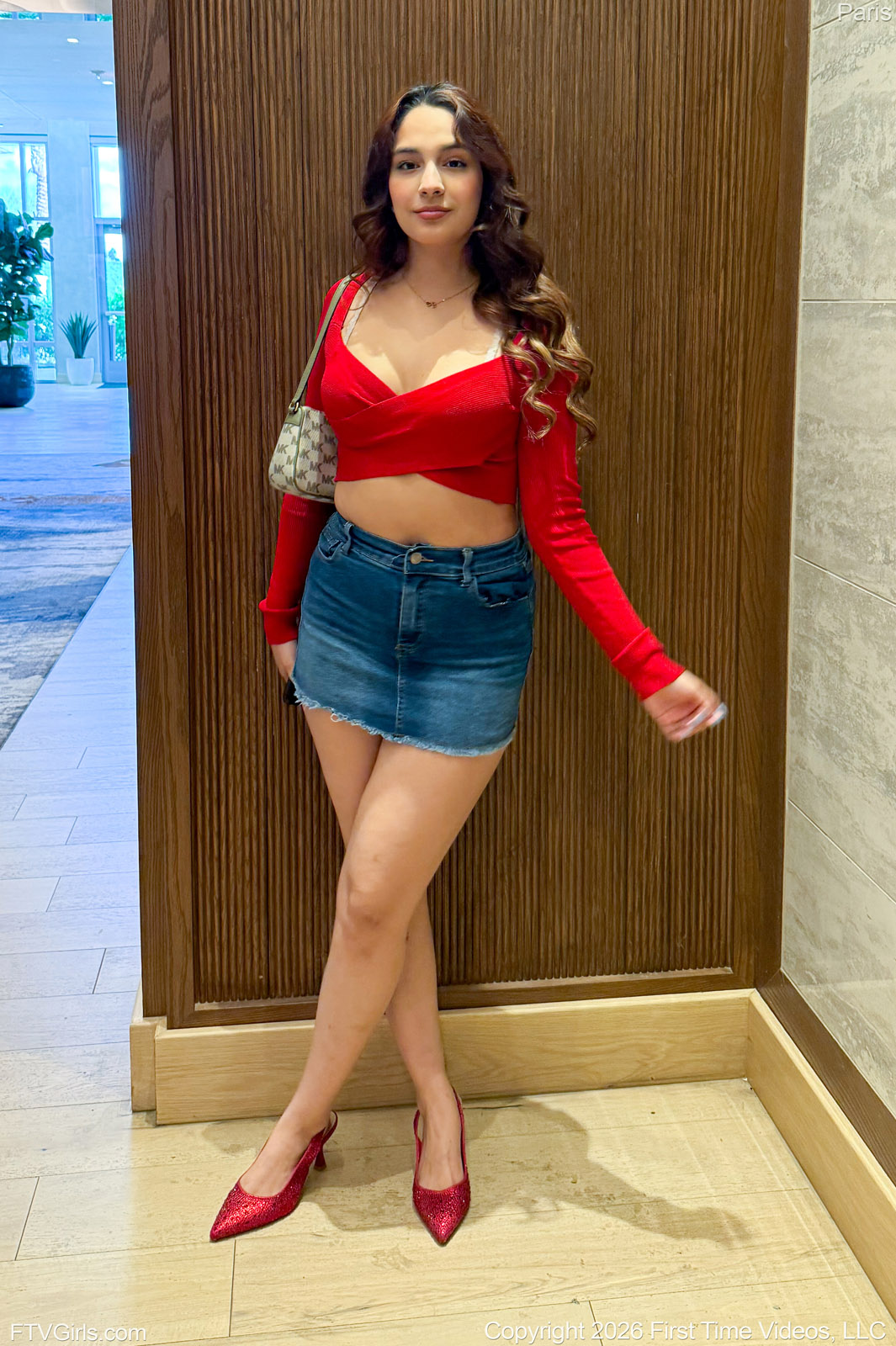 Paris enjoys wearing her christmas red top and denim skirt when she's flashing her tits and ass around town for FTV Girls.