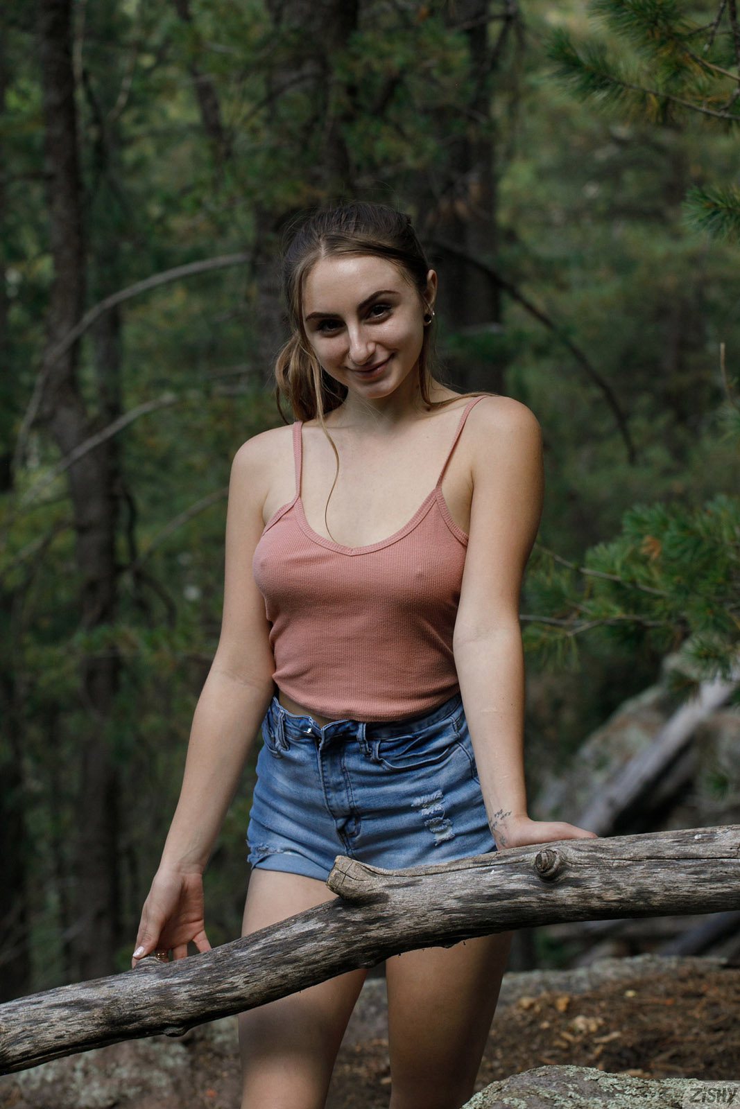 Penelope Kay is feeling like even more of a nature dork as she pulls down her thong to walk around the forest bottomless on Zishy.