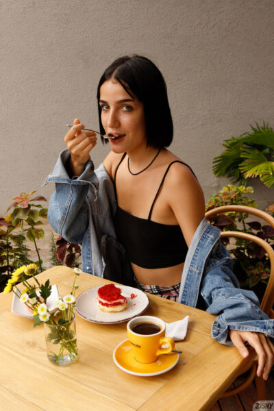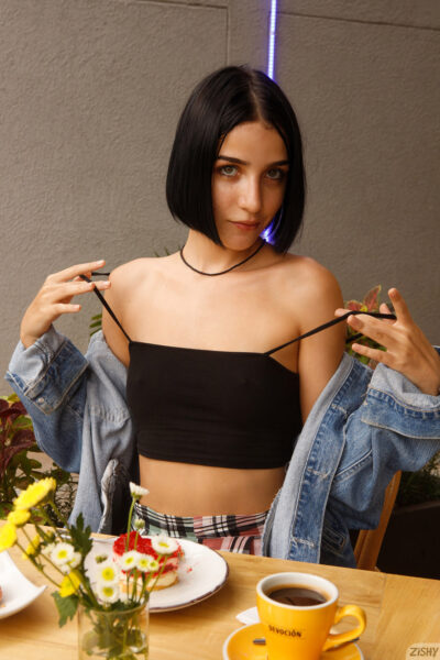 Queti Revello is the shiny valentine who would rather go on a casual lunch date so she can wear her mini skirt and tank top on Zishy.