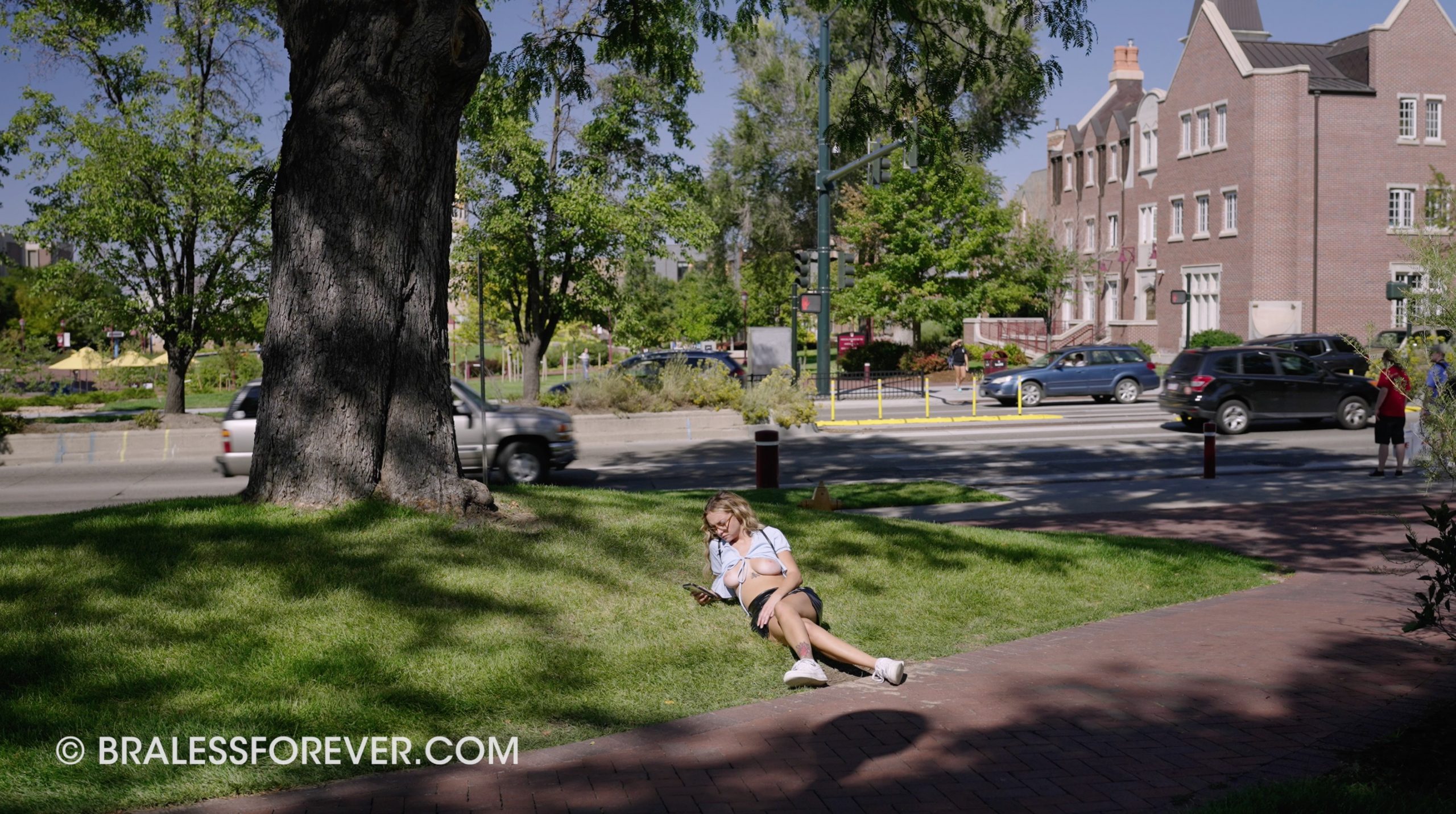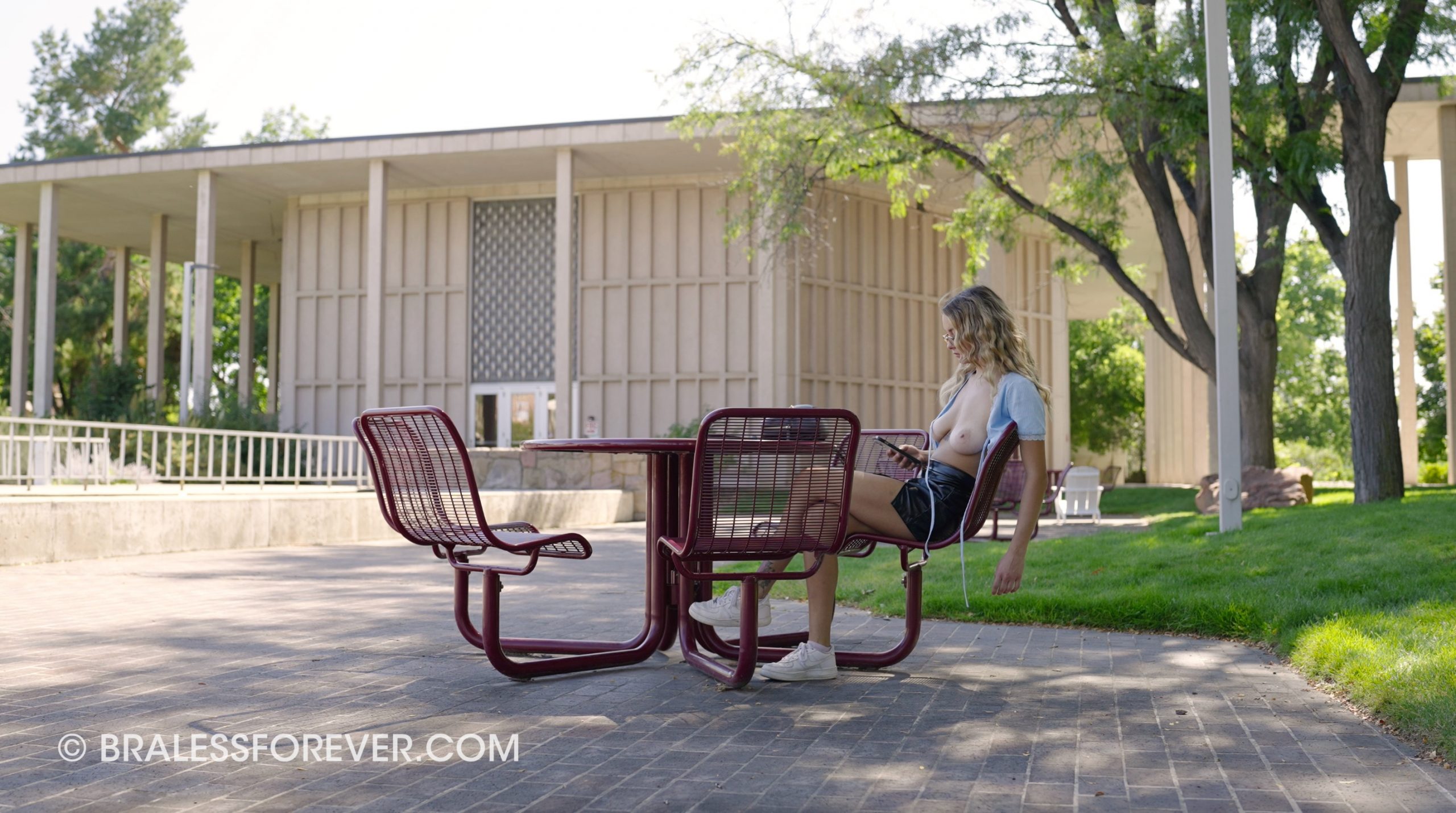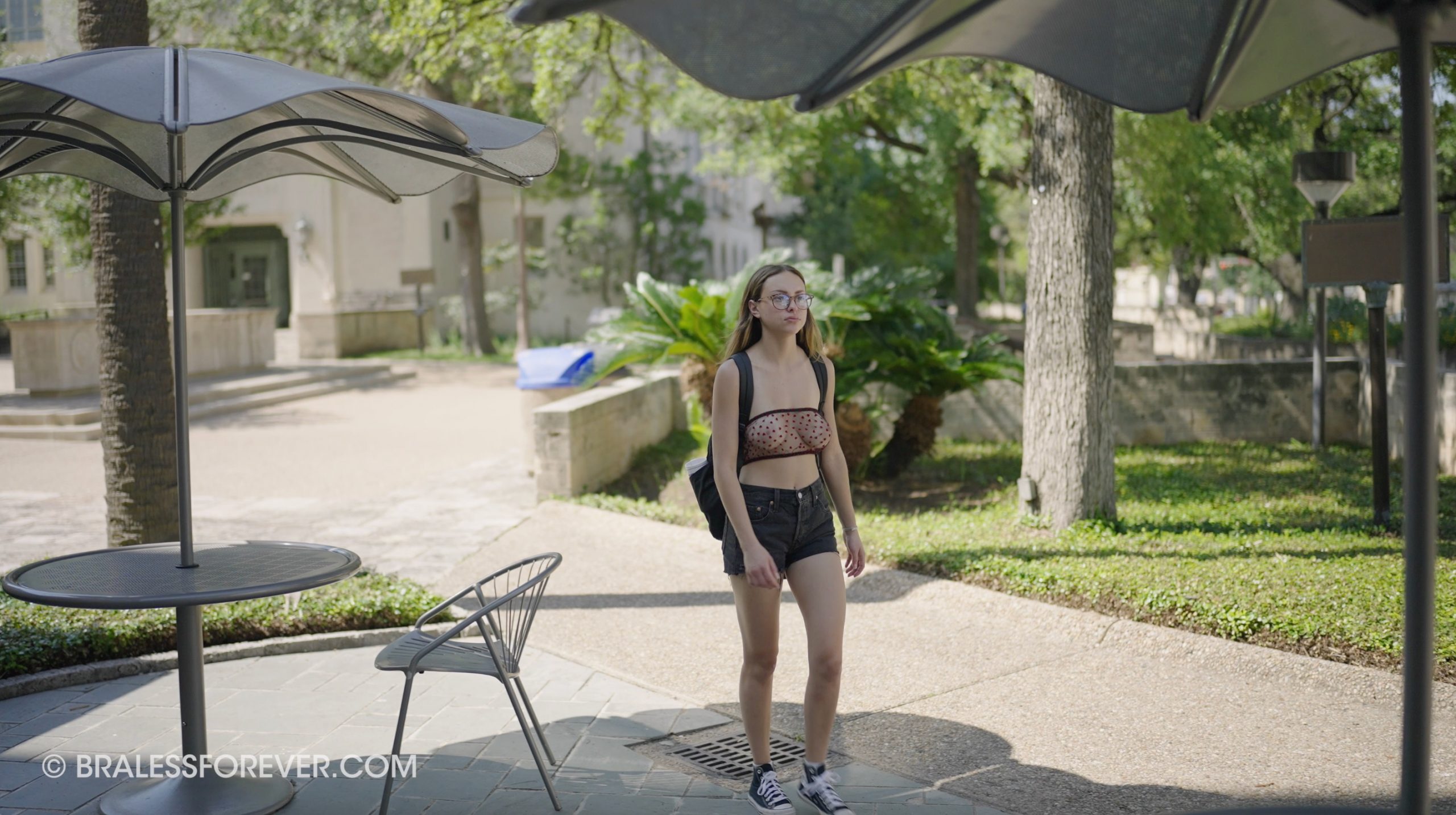 Rachel is that cute blonde girl hanging around the college campus in her sheer top, or an open blouse that shows off her boobs on Braless Forever.