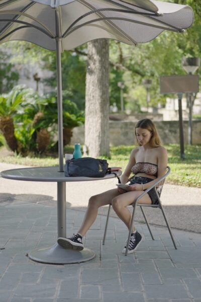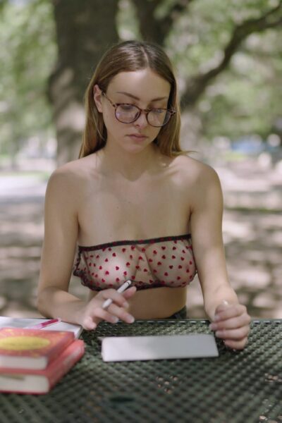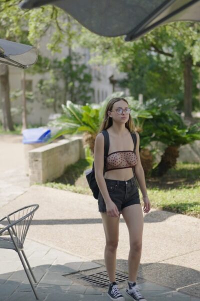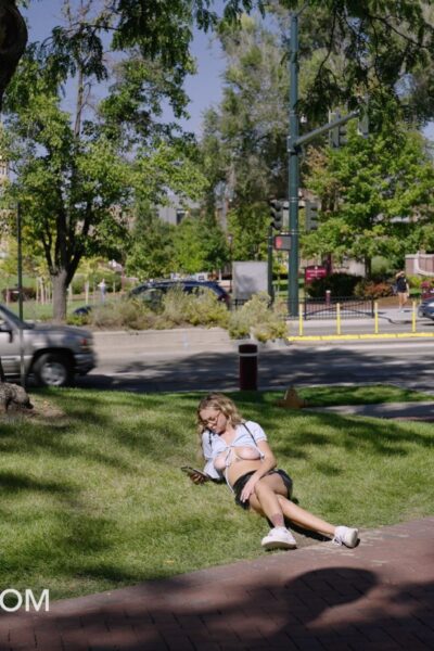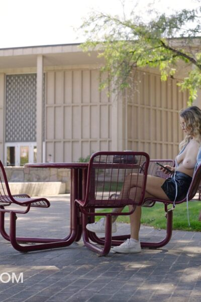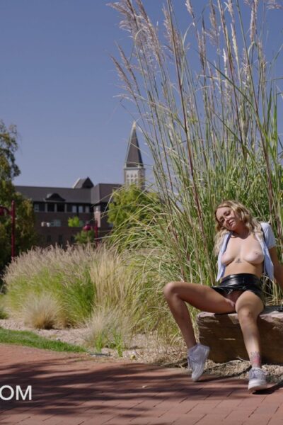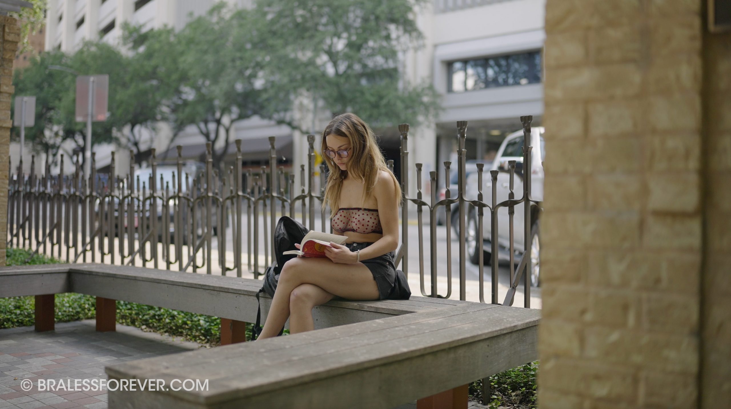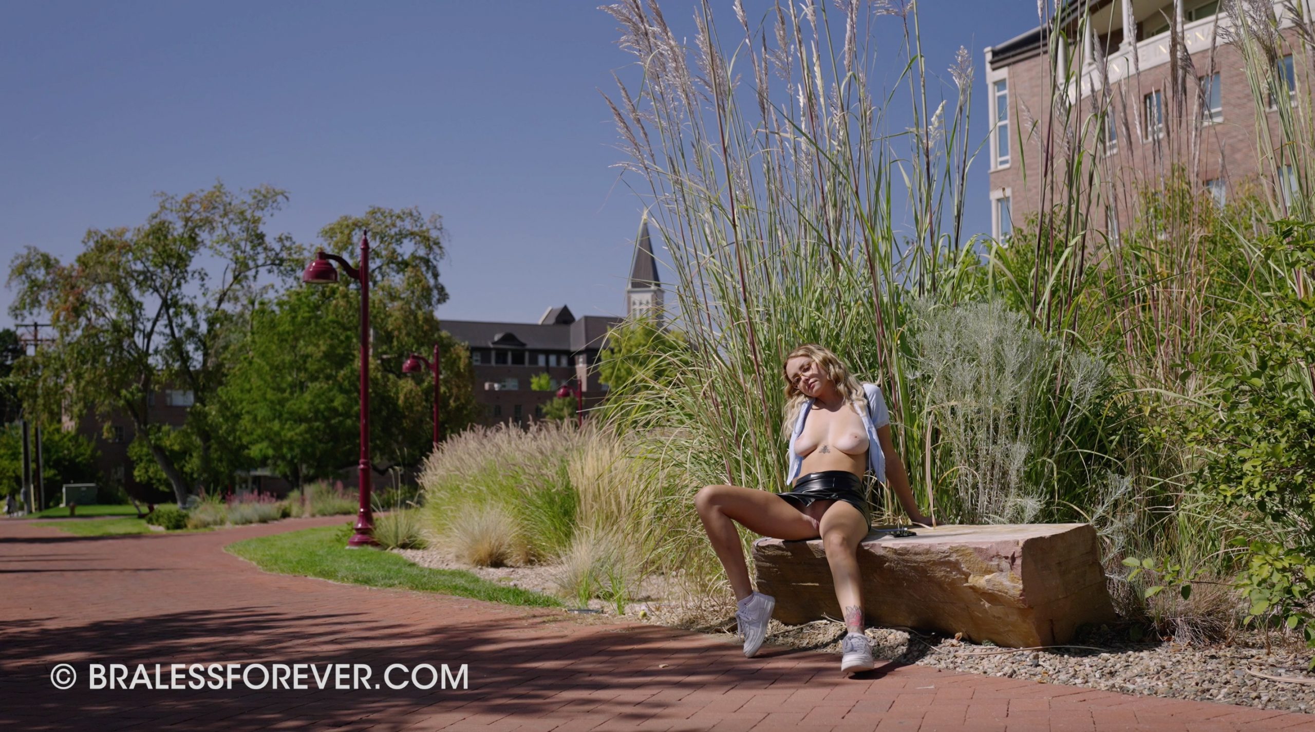Rachel is that cute blonde girl hanging around the college campus in her sheer top, or an open blouse that shows off her boobs on Braless Forever.