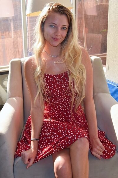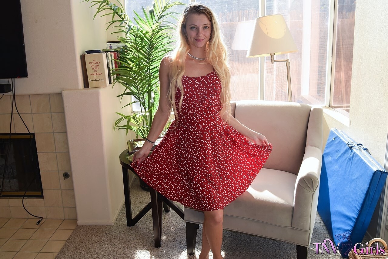 Riley Star is the golden girl next door who loves to wear a cute dress and panties before getting fully naked on TNV Girls.