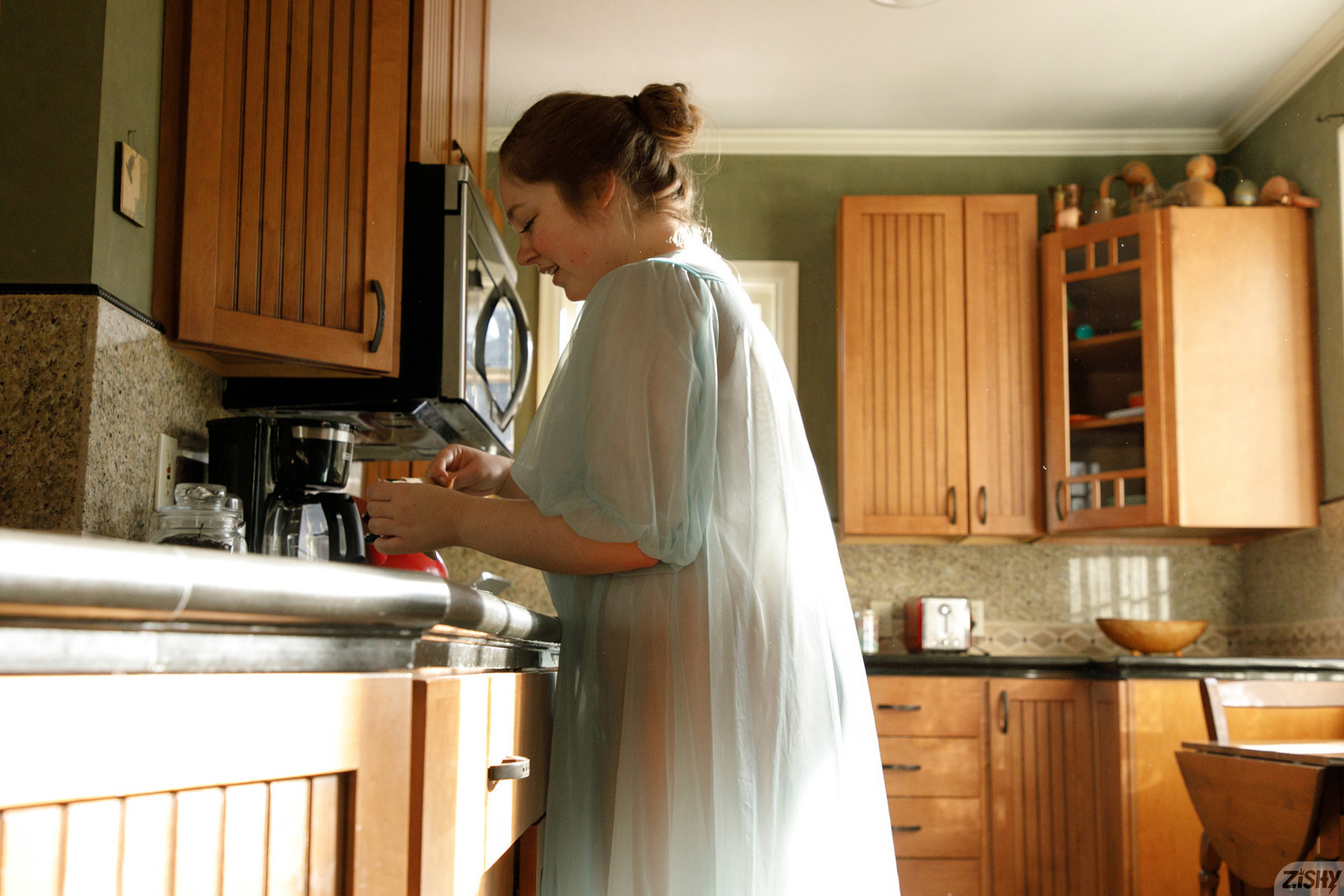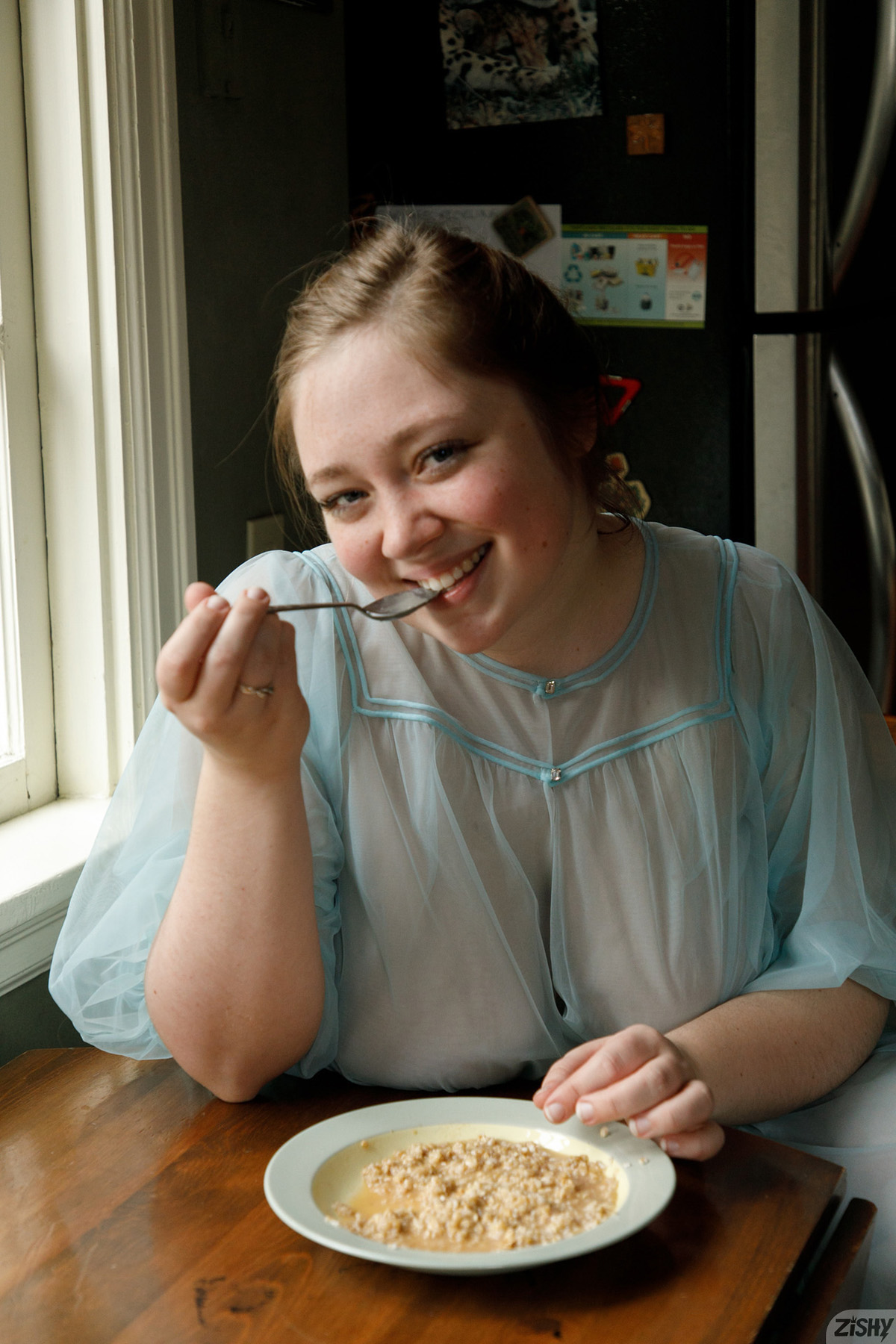 Rose Fessenden is like instant oatmeal because she goes down thick and you come back for more as she poses in a sheer robe on Zishy.