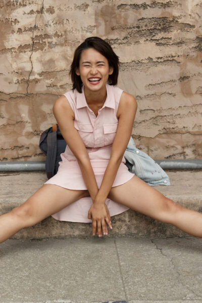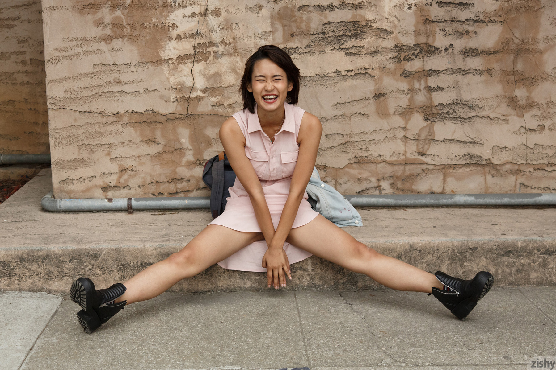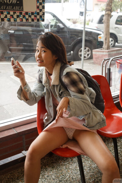 Saki Kishima says "read my lips" in the grocery store while she's in a cute pink dress, and she ends up flashing her boobs all over town on Zishy.