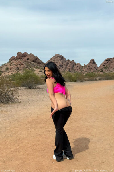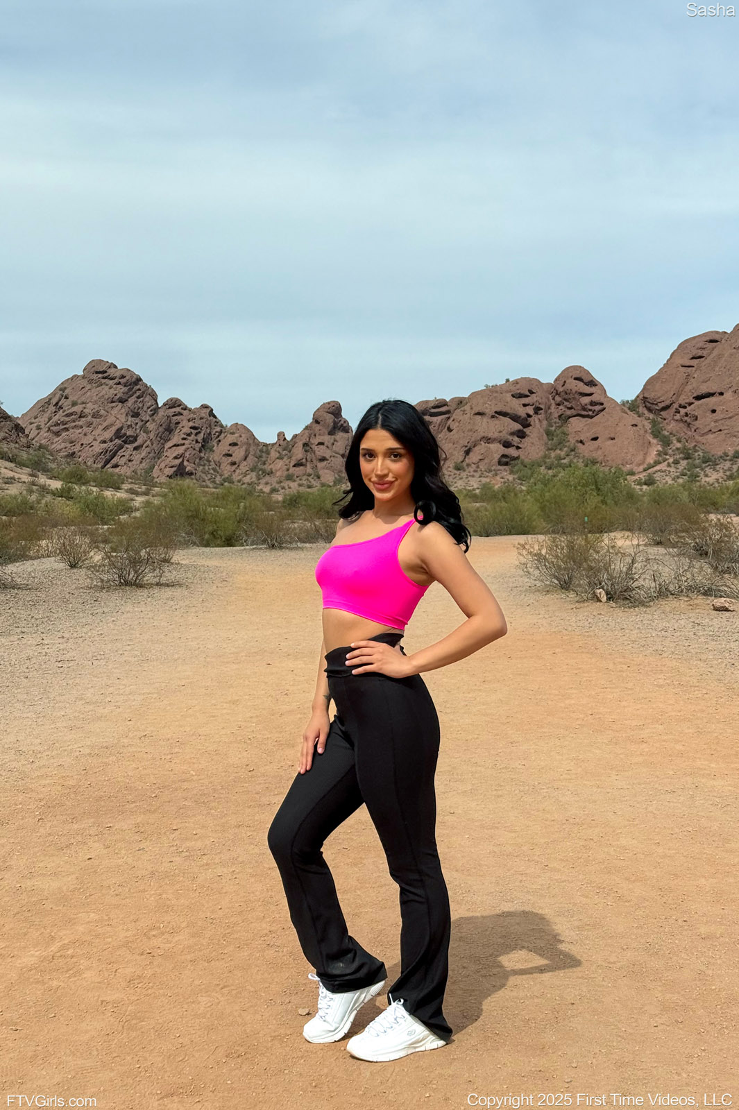 Sasha Reign got lost on the trail so she figures pulling down her leggings to simply be naked in nature will work on FTV Girls.