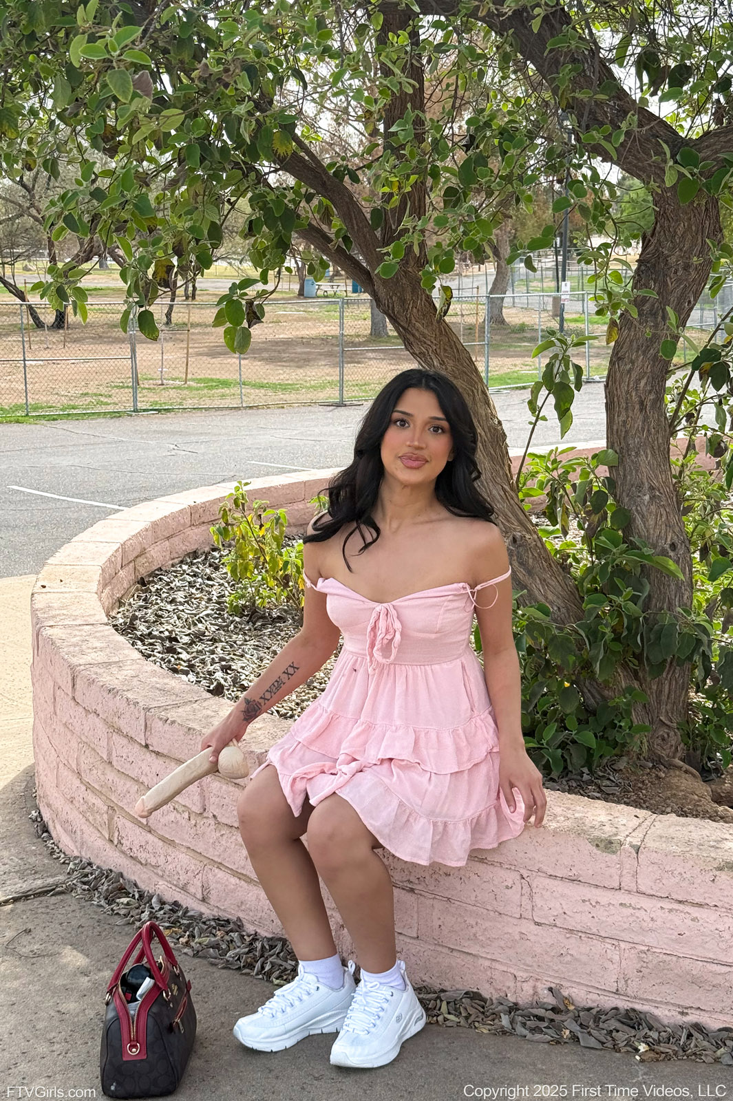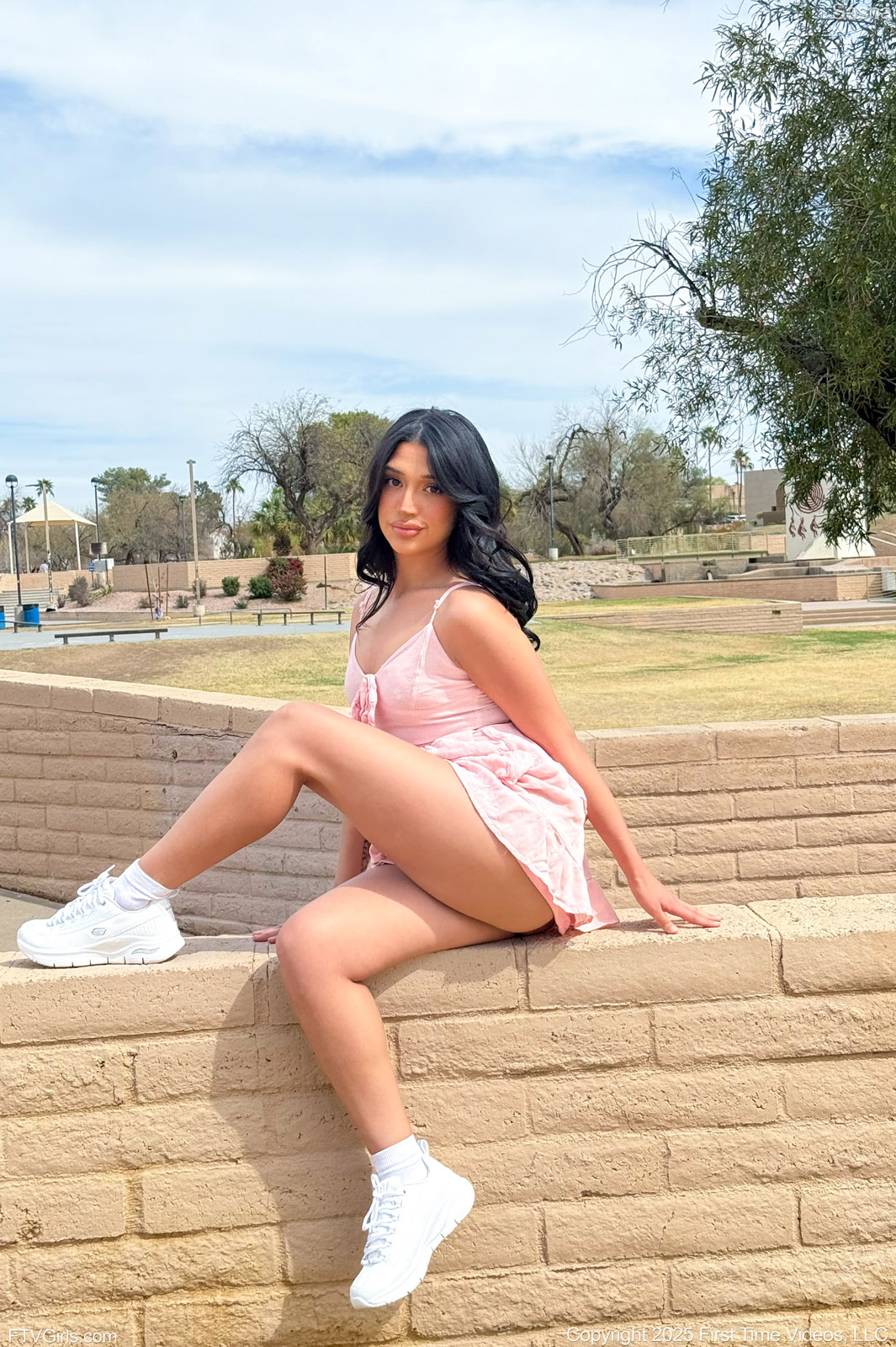 Sasha Reign wears her favorite pink dress at the park so she can show off her cute thong and pussy on FTV Girls.