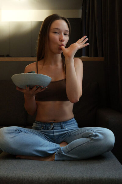 Sayah Heaney is enjoying her Summer Melon while she hangs out in her jeans, showing off her cotton thong and perfect ass on Zishy.