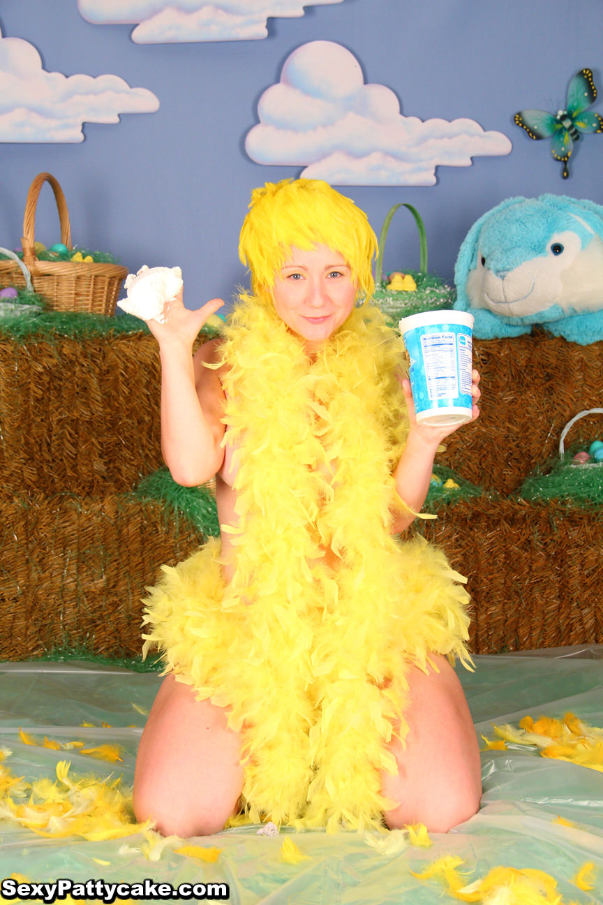 is pretty clever with this easter cosplay. I just like that she's getting all kinds of sticky which gives me even more naughty thoughts.