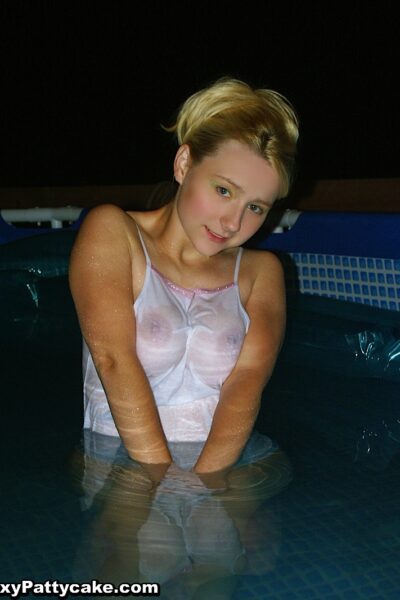 Sexy Pattycake goes for a summer night swim in her cotton top and panties which means totally see thru when she's wet, but Pattycake plans on skinny dipping anyway.