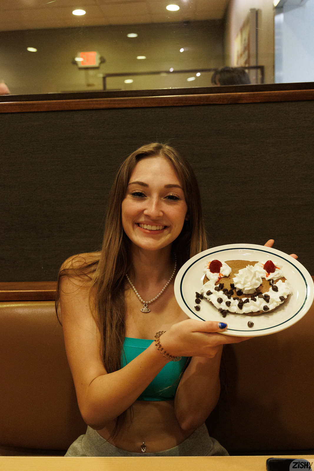 Skyla Kirch likes going to the diner for some pancakes them going back home to take off her leggings for naked fun on Zishy.