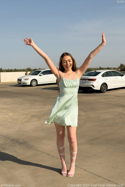 Come watch Sophie Hunt in her cute little green dress while she does some flashing outdoors by revealing her tits and ass on FTV Girls.