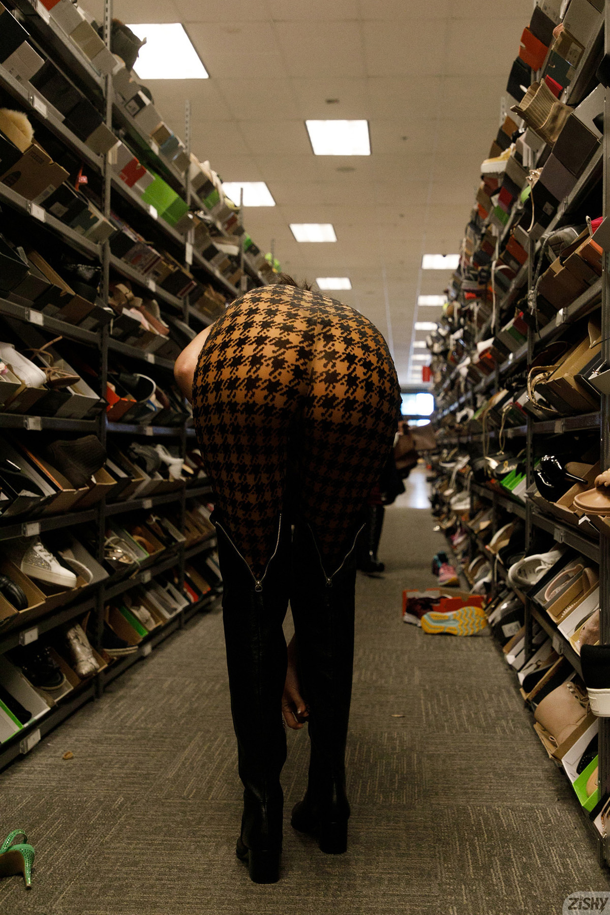 Soledad Lomas enjoys being in nordstrom rack wearing her cute romper while she bends over and flashes her nice boobs on Zishy.