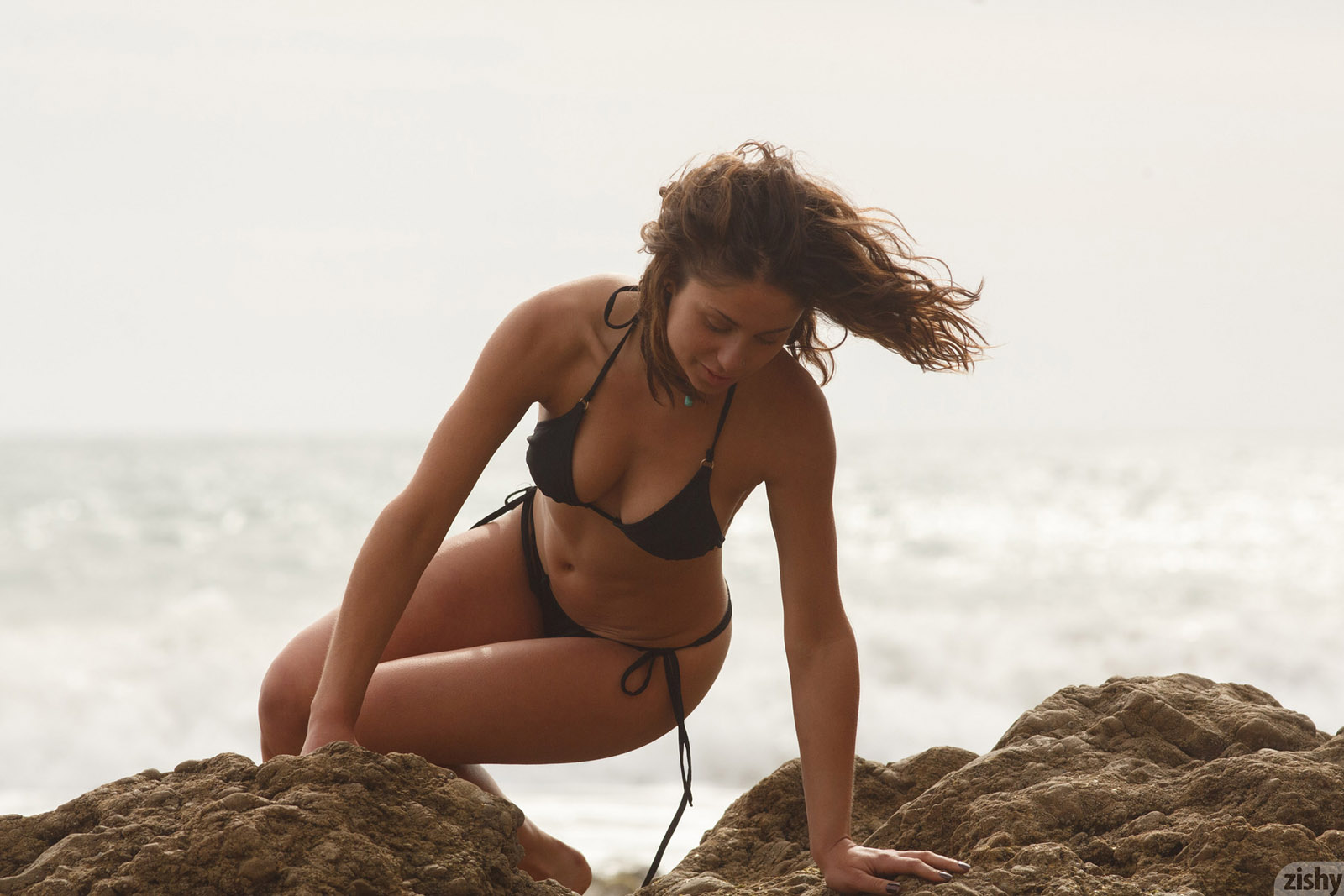Sonya Ash proves that baywatch hype is real because this bikini model loves to flash her ass on the beach for Zishy.