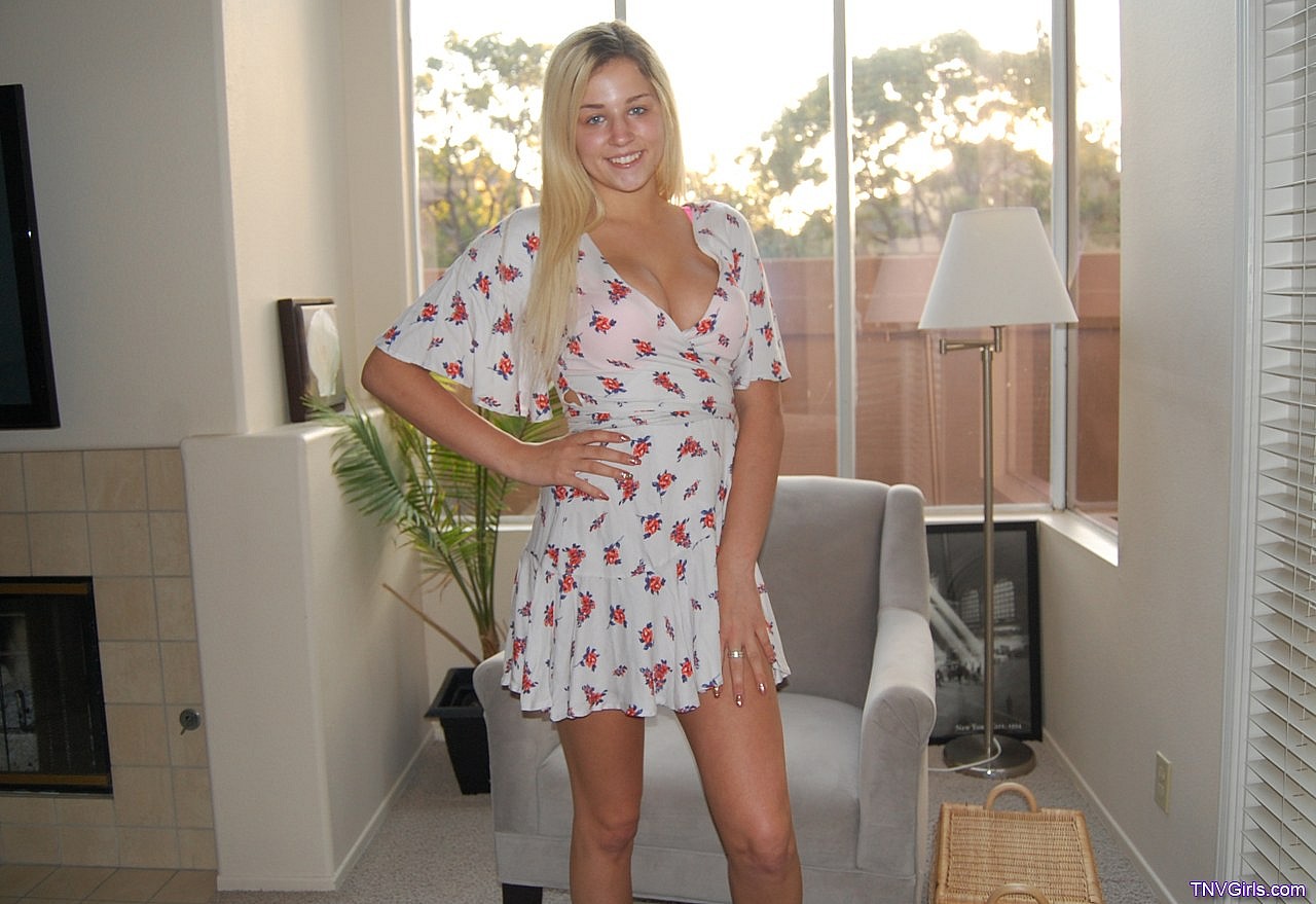 Sophia Lux loves posing by the window in her flower dress and cotton panties before she goes fully naked on TNV Girls.